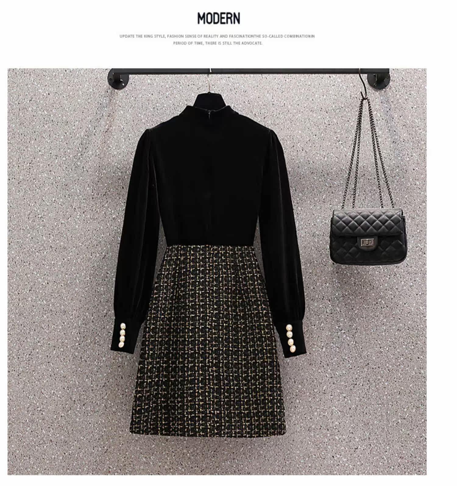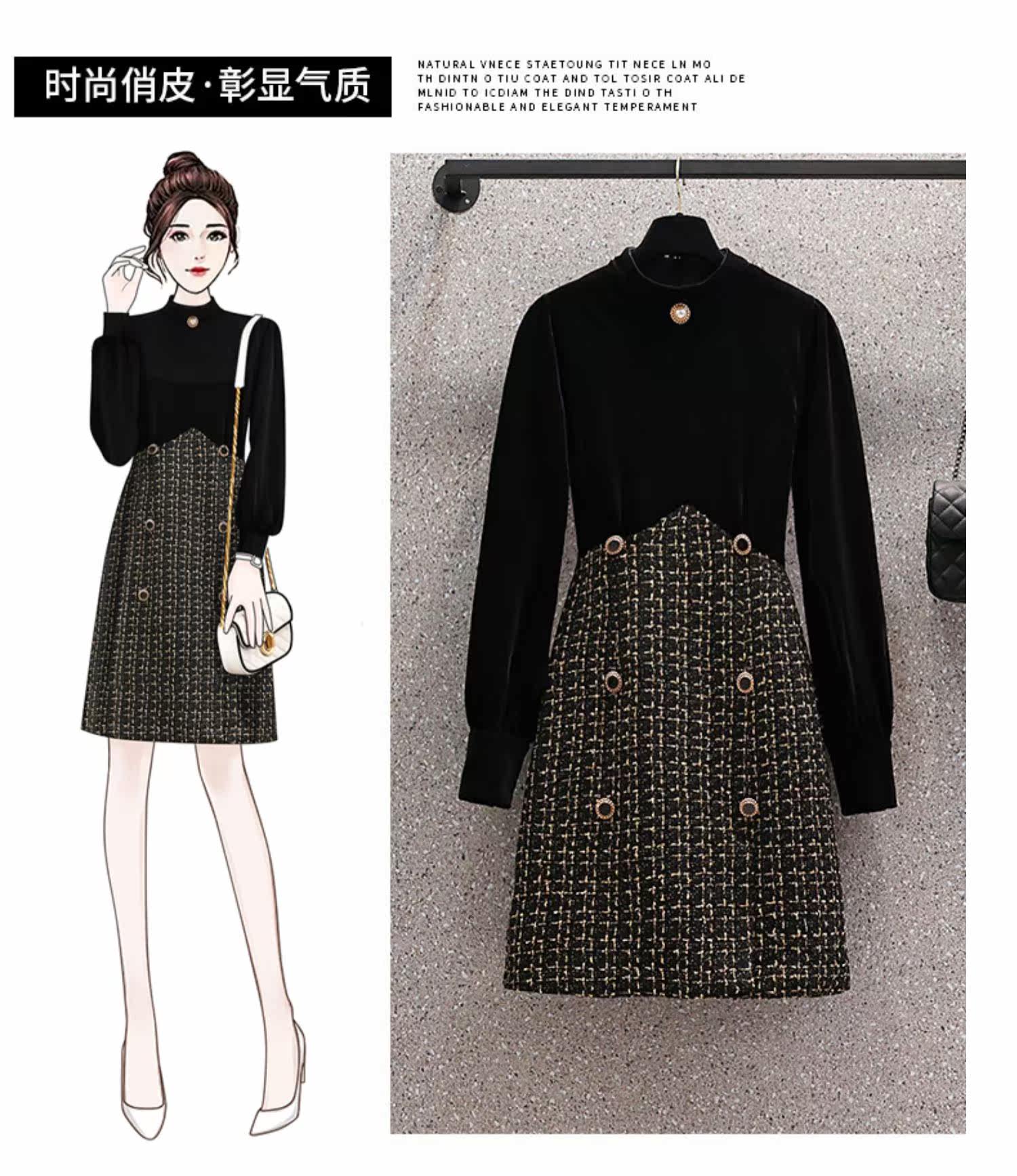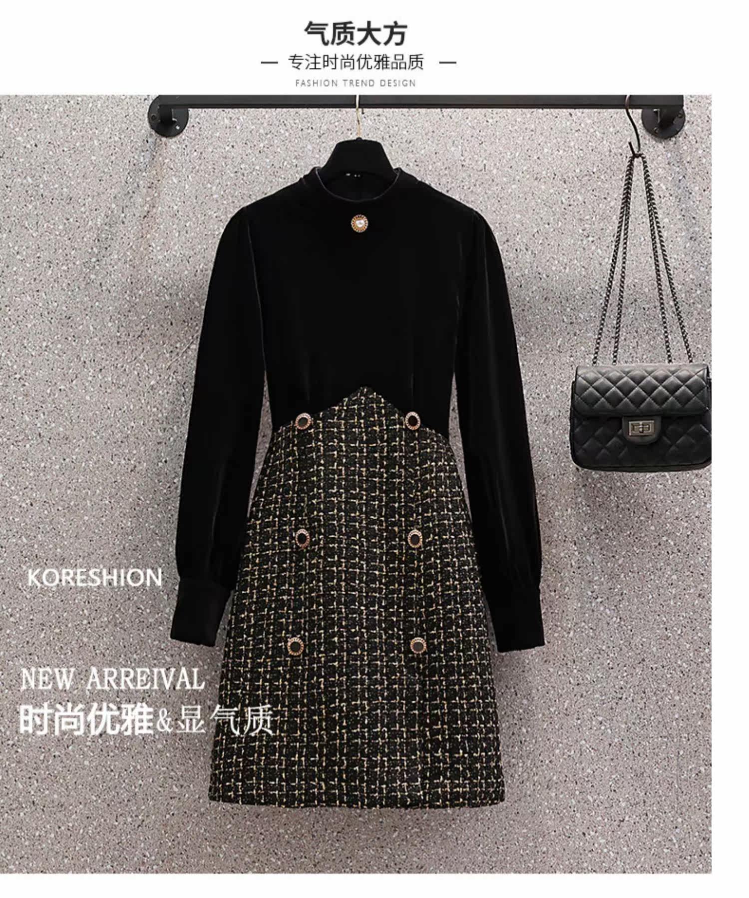 Демисезонный корсет, бархатное платье, большой размер, коллекция 2021, подходит для полных девушек, по фигуре, в стиле Шанель