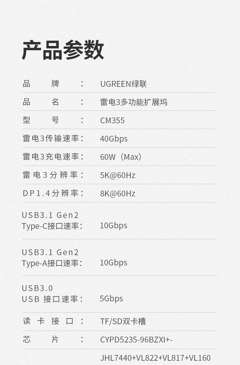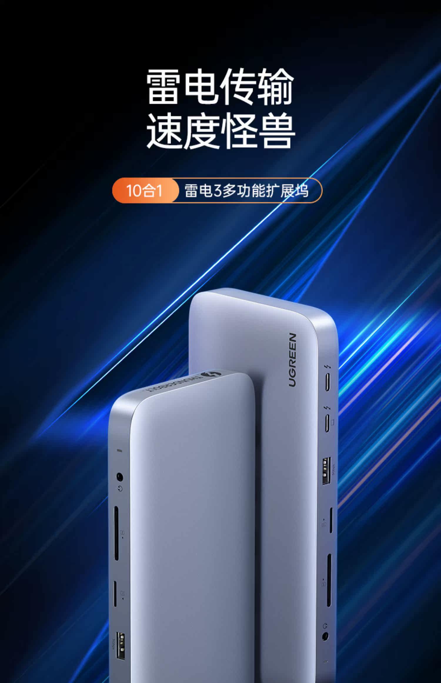 - [10-в-1] Lightning 3+DP1.4+Чтение карты+Gigabit Network Port+Audio+Type-C3.1+USB3.1x2+USB3.0