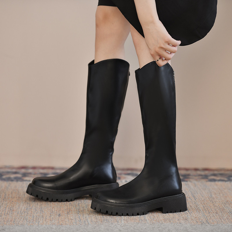 Демисезонные модные высокие сапоги, универсальные ботинки в английском стиле на платформе, в британском стиле