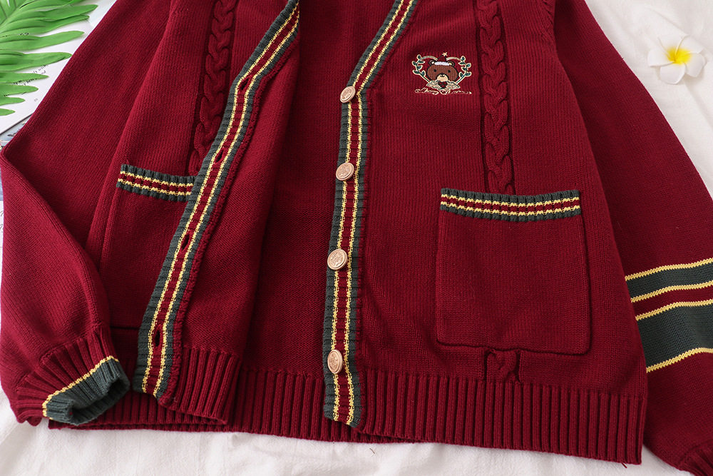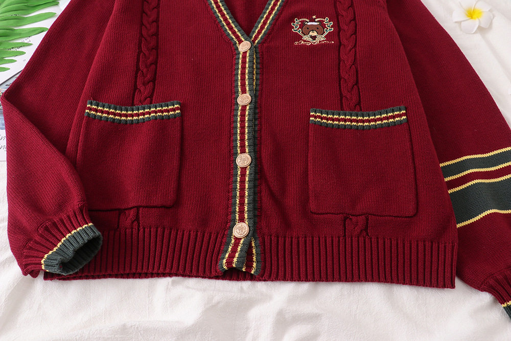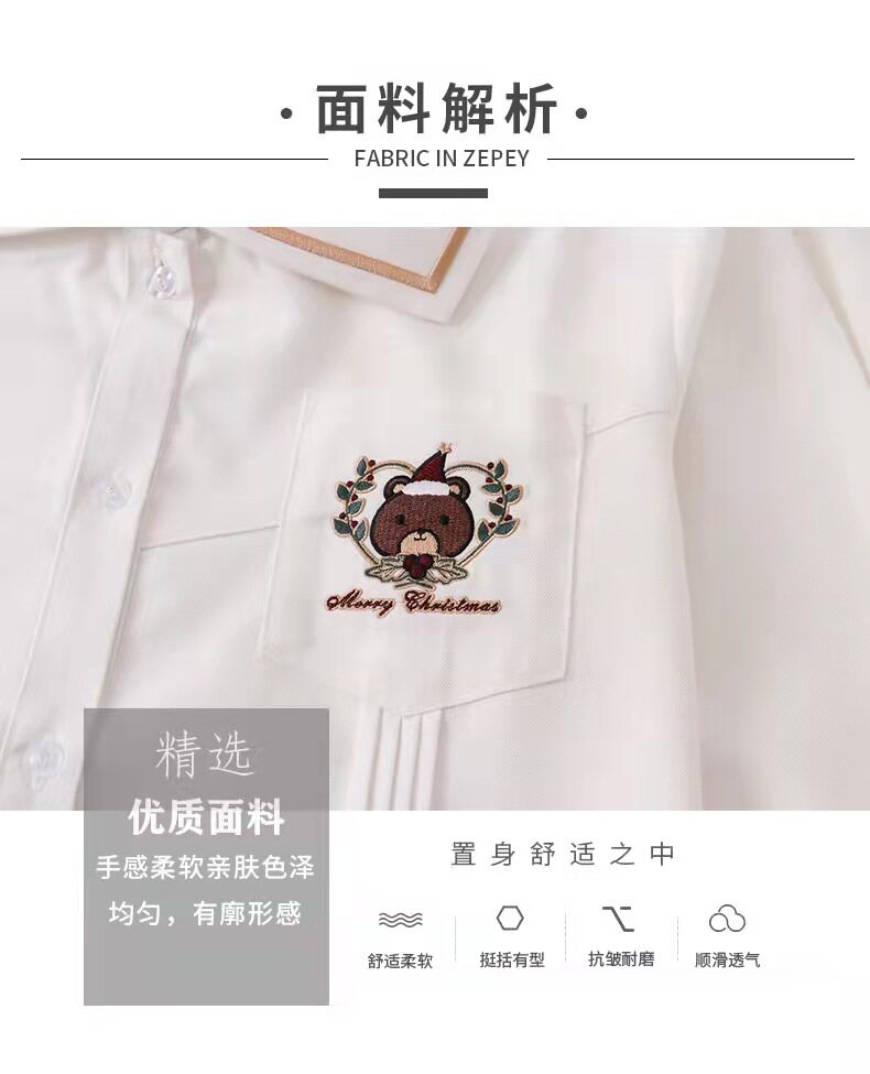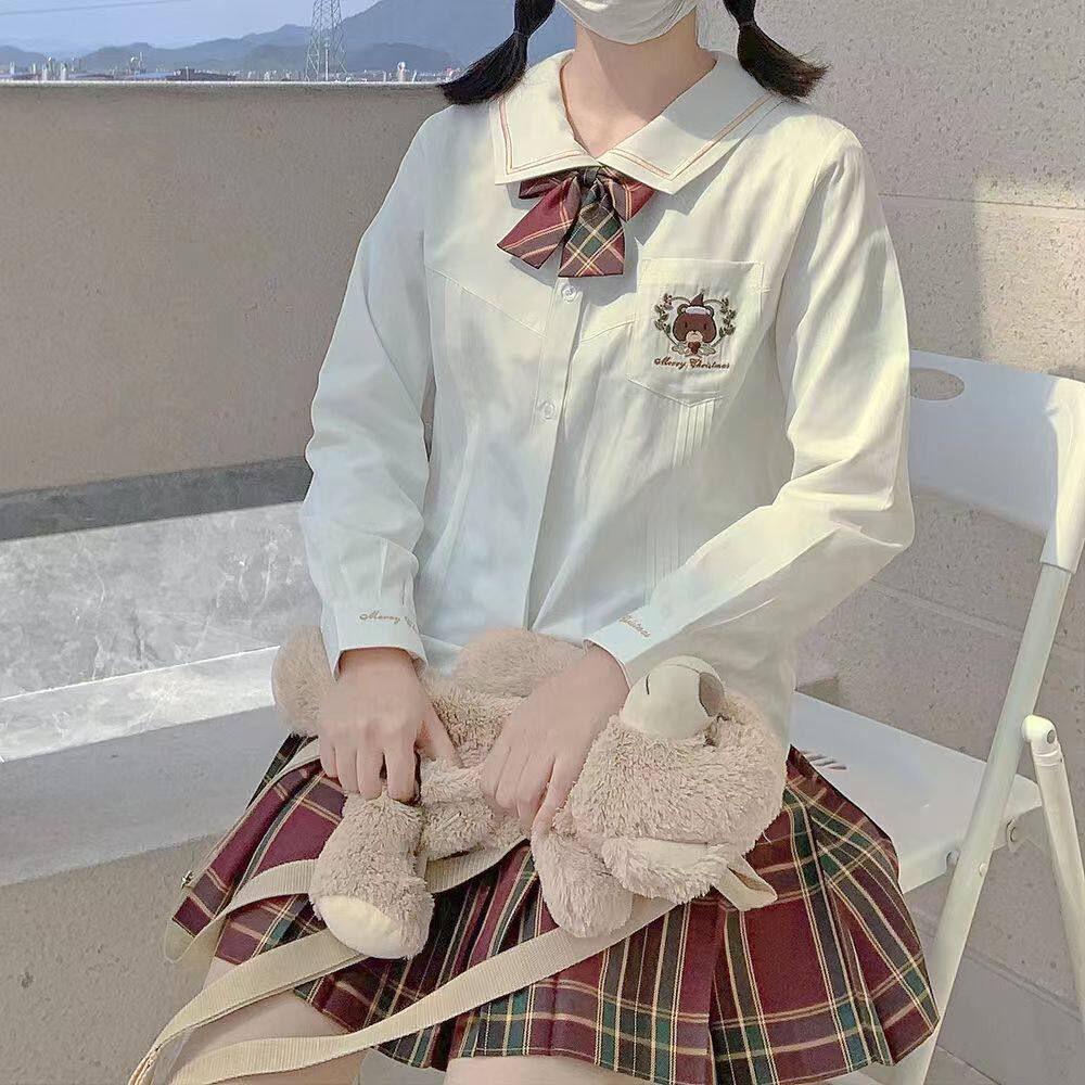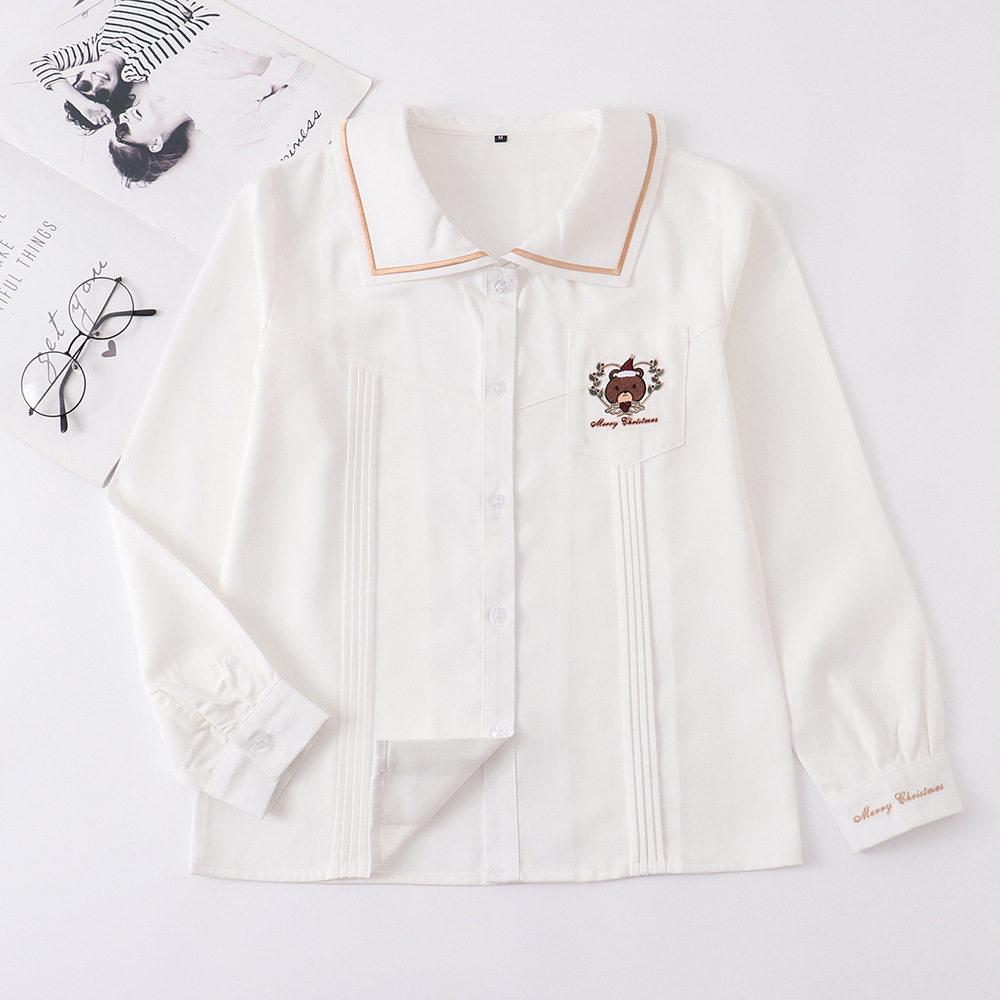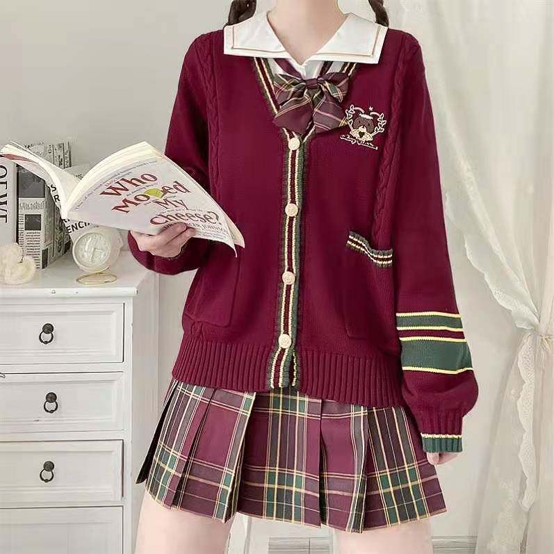 Зимняя рубашка, оригинальная студенческая юбка в складку, кардиган, свитер, с медвежатами, с вышивкой, свободный крой