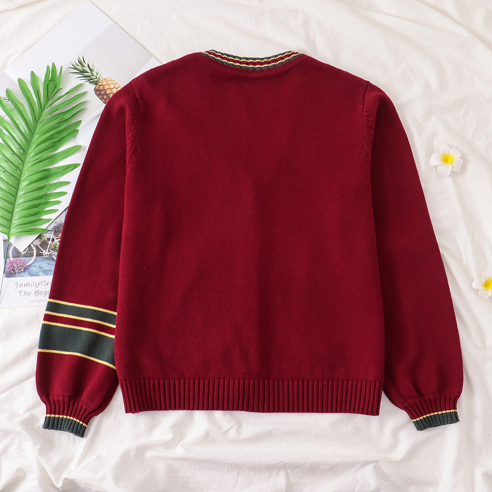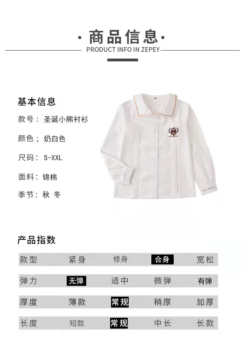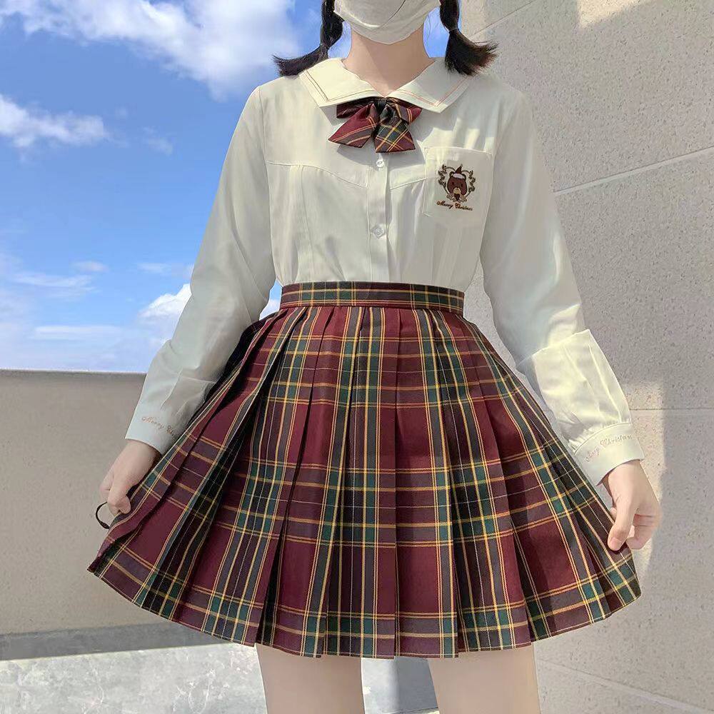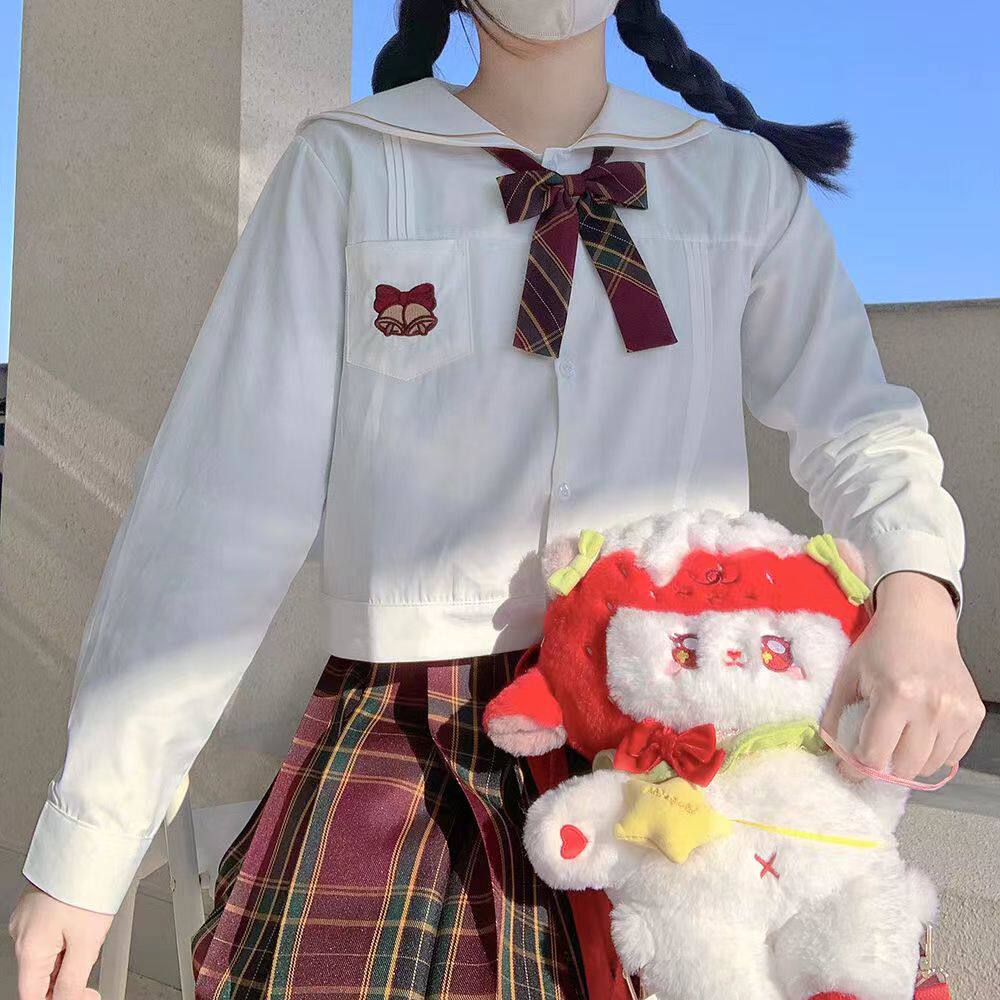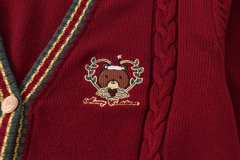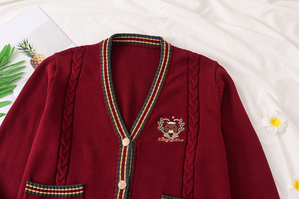 Зимняя рубашка, оригинальная студенческая юбка в складку, кардиган, свитер, с медвежатами, с вышивкой, свободный крой