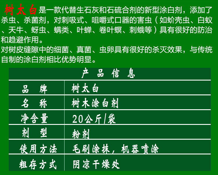 Отбеливающий агент для стволов деревьев, белого порошка, деревьев, отбеливания, ландшафта, пленки с насекомыми и антифризой, цитрусовые можно распылить 20 кг.