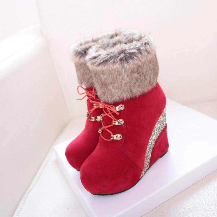 Удерживающие тепло туфли на высоком каблуке, флисовые универсальные короткие сапоги