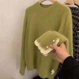 Демисезонный небольшой дизайнерский бархатный зеленый цветной свитер, французский стиль, подходит для подростков, тренд сезона