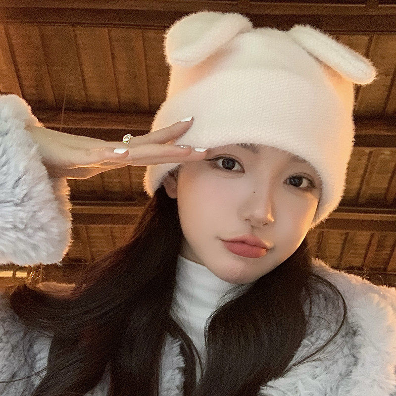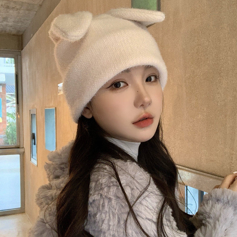 Модная трикотажная удерживающая тепло японская милая шерстяная демисезонная вязаная шапка