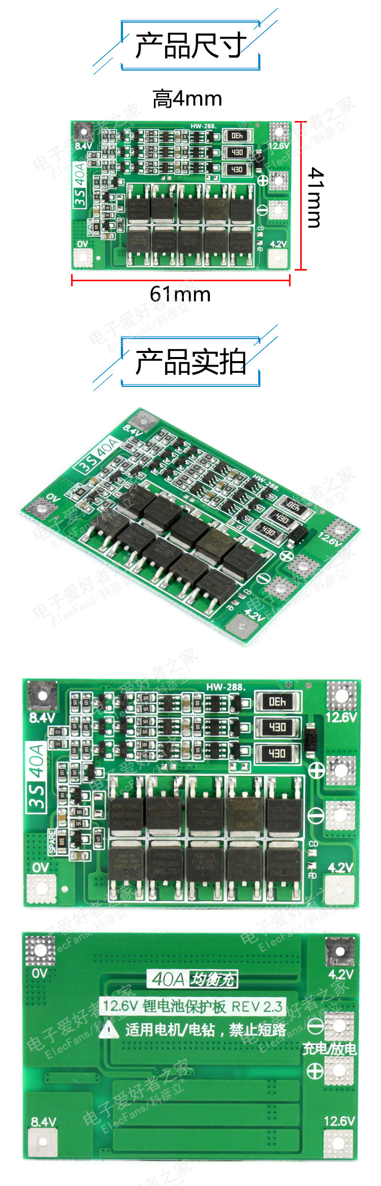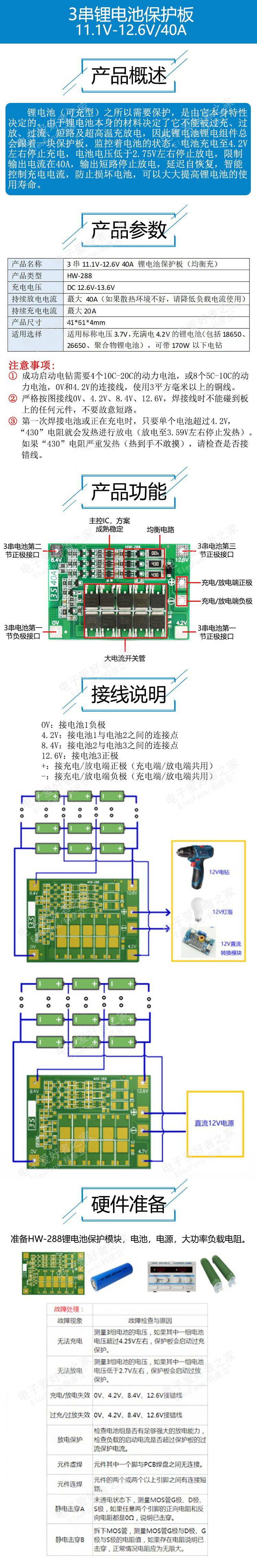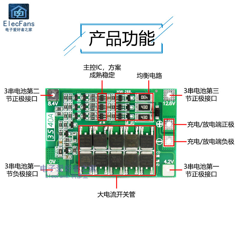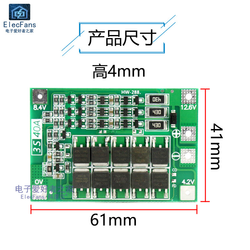 3 серия 11.1V 12.6 В 18650 Балансировка модуля защиты лития батарея может запустить электрическую бурину 40A ток