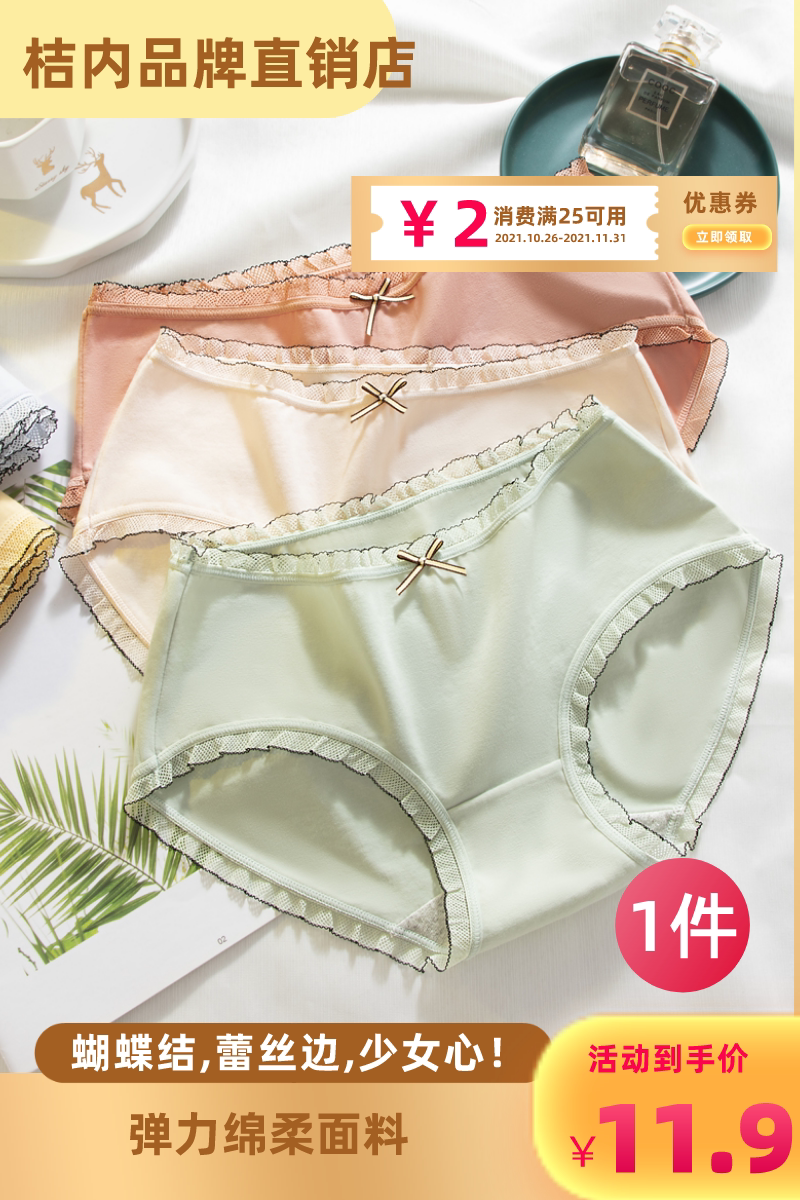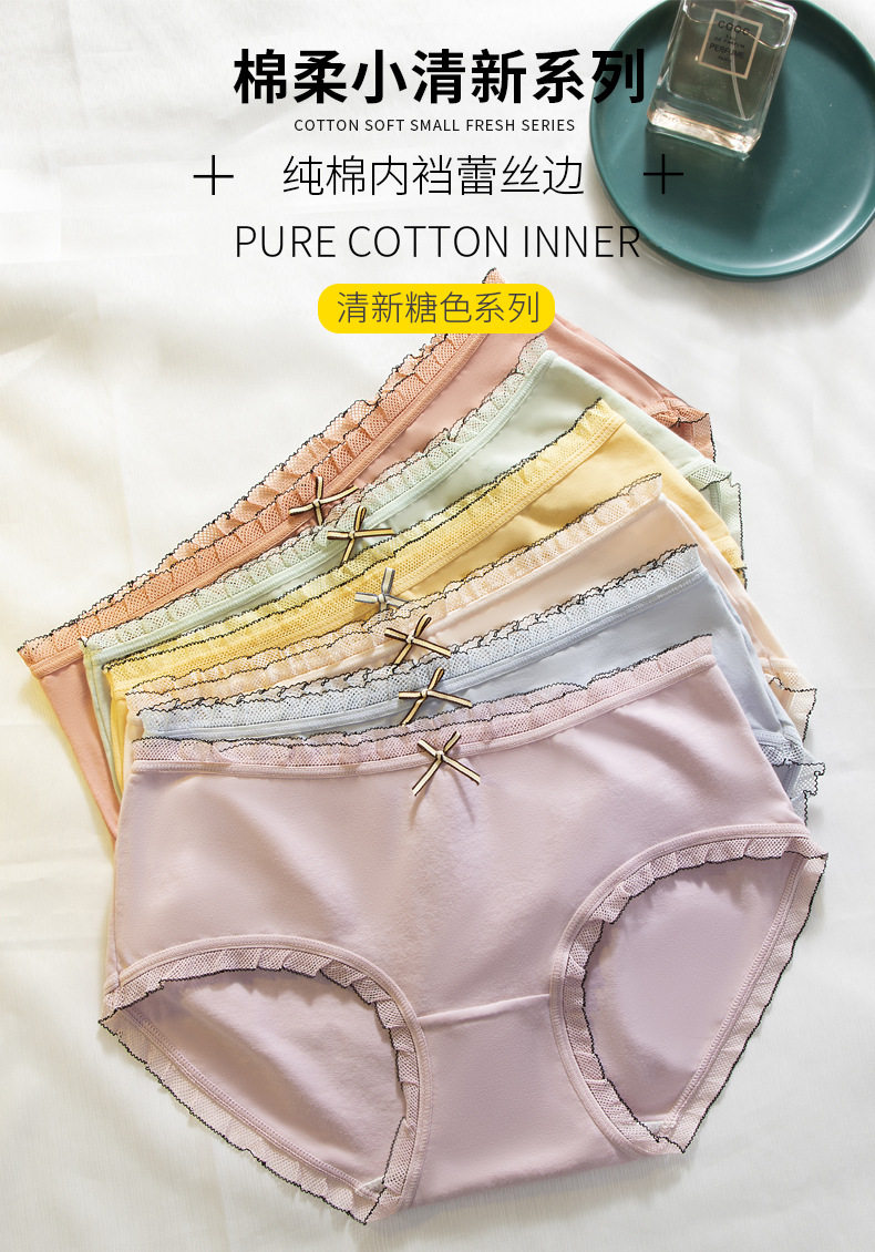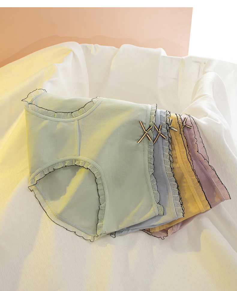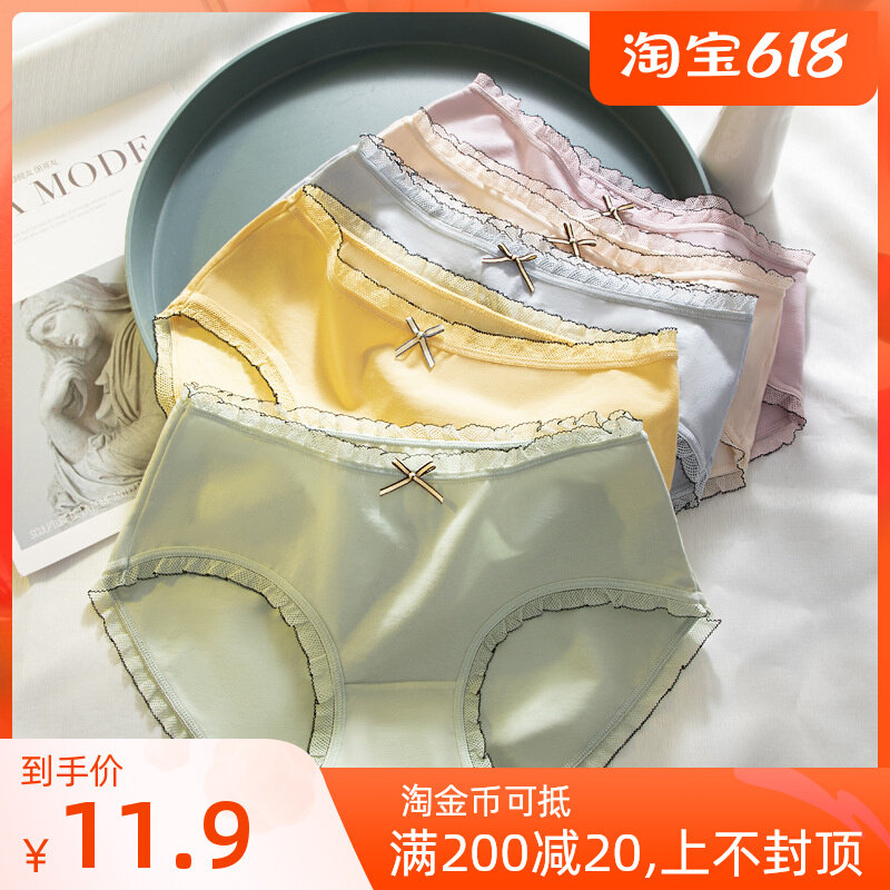 Нижнее белье, хлопковые милые штаны, кружевные комфортные дышащие тонкие трусы, средняя посадка, кружевное платье