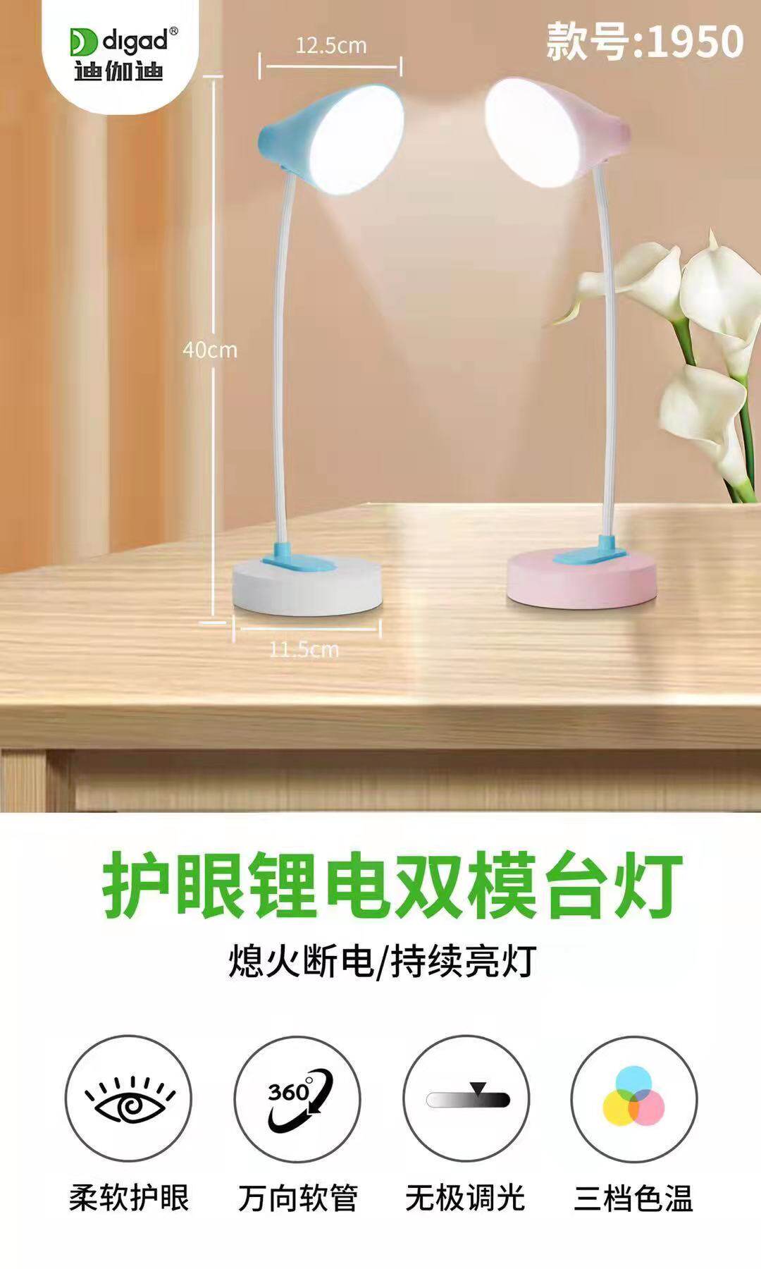 迪伽迪 Светодиодные литиевые батарейки, обучающая настольная лампа, чтение для кровати для рабочего стола для письма, защита глаз
