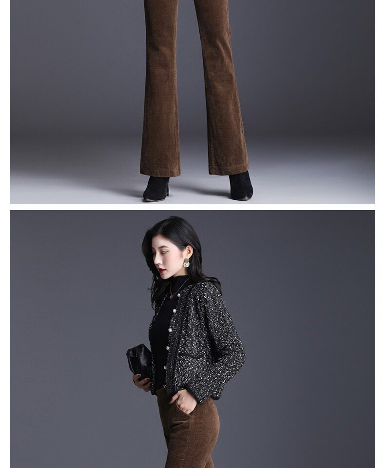Вельветовые штаны-клёш, осенние демисезонные штаны, подходят для подростков, коллекция 2023, высокая талия, свободный прямой крой