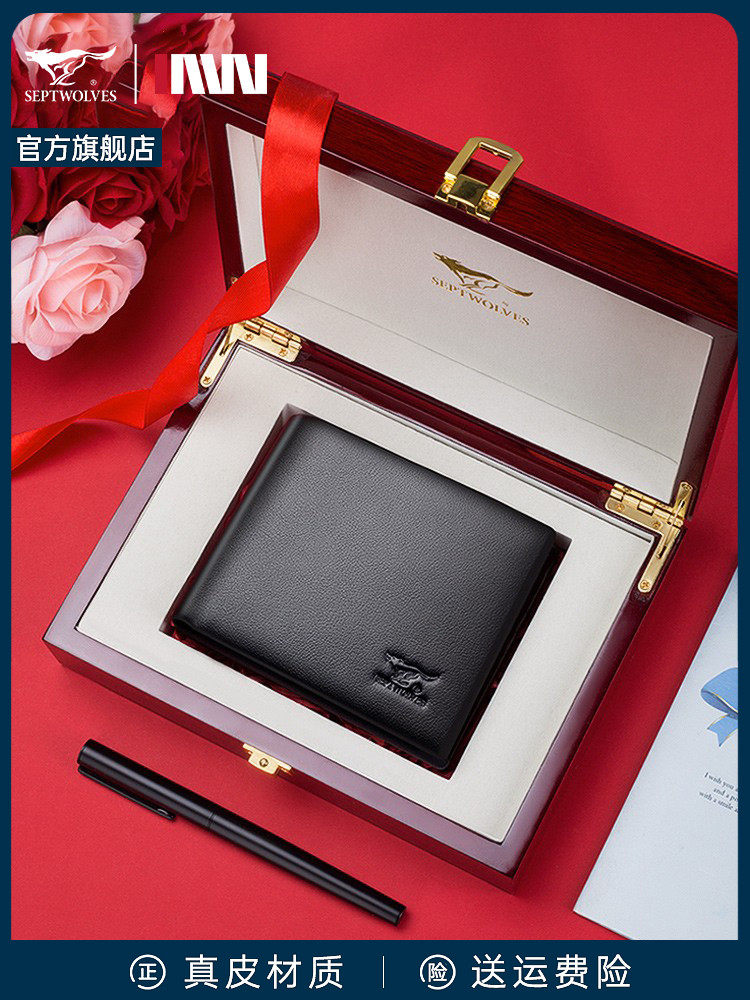 Septwolves, мужской бумажник, деревянная подарочная коробка, кошелек, из натуральной кожи, подарок на день рождения