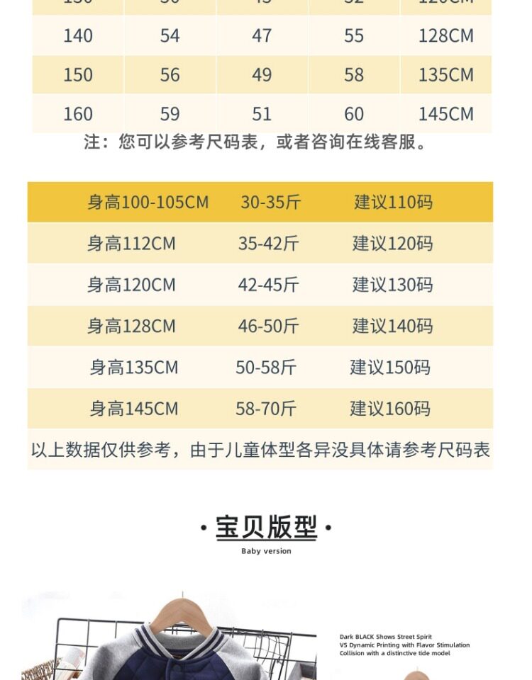 | Справочная высота: | Размер 120 подходит на рост 112 (35-42 фунта)., Размер 130 подходит на рост 120 (42-45 фунтов)., Размер 140 подходит на рост 128 (46-50 фунтов)., Размер 150 подходит на рост 135 (50-58 фунтов)., Размер 160 подходит на рост 145 см (58-70 кг). |