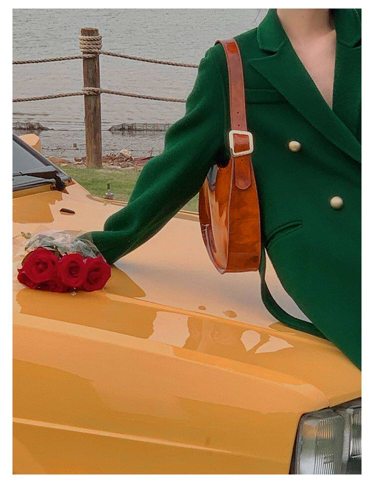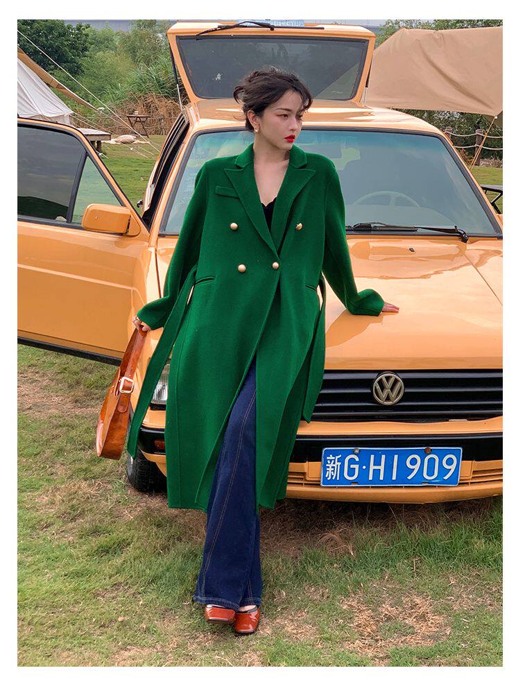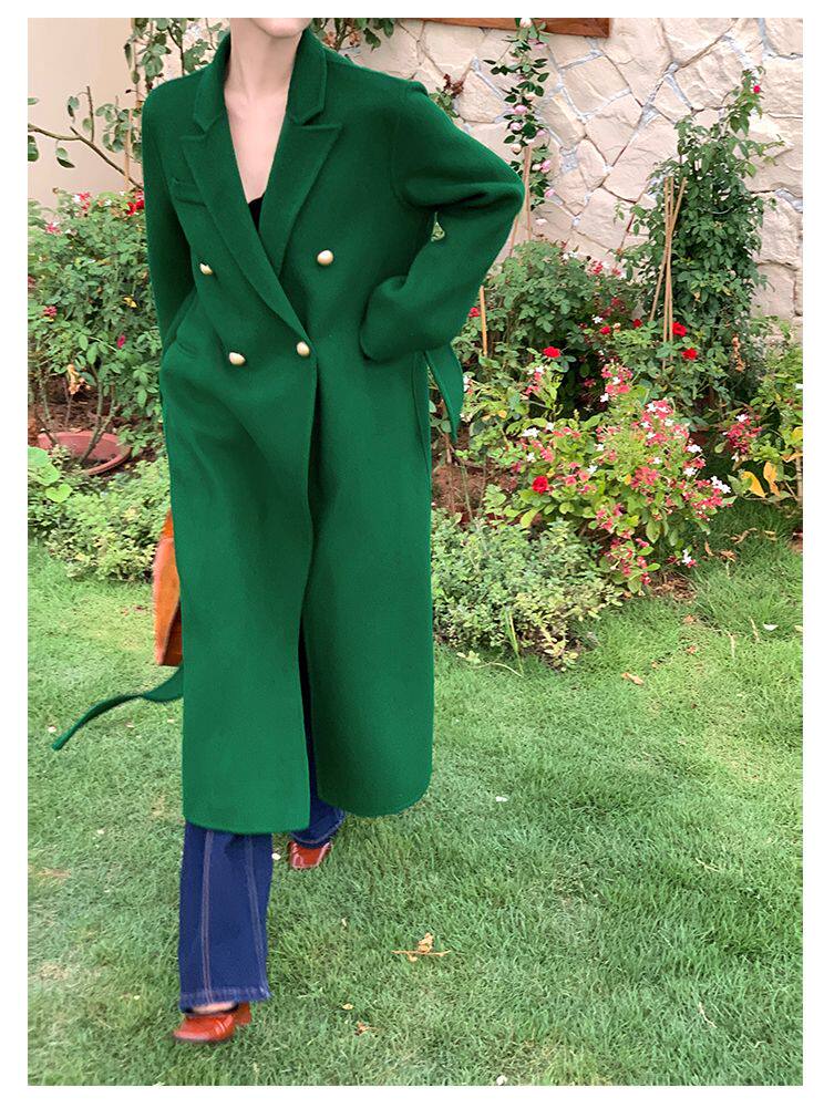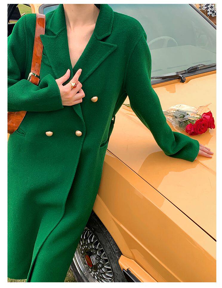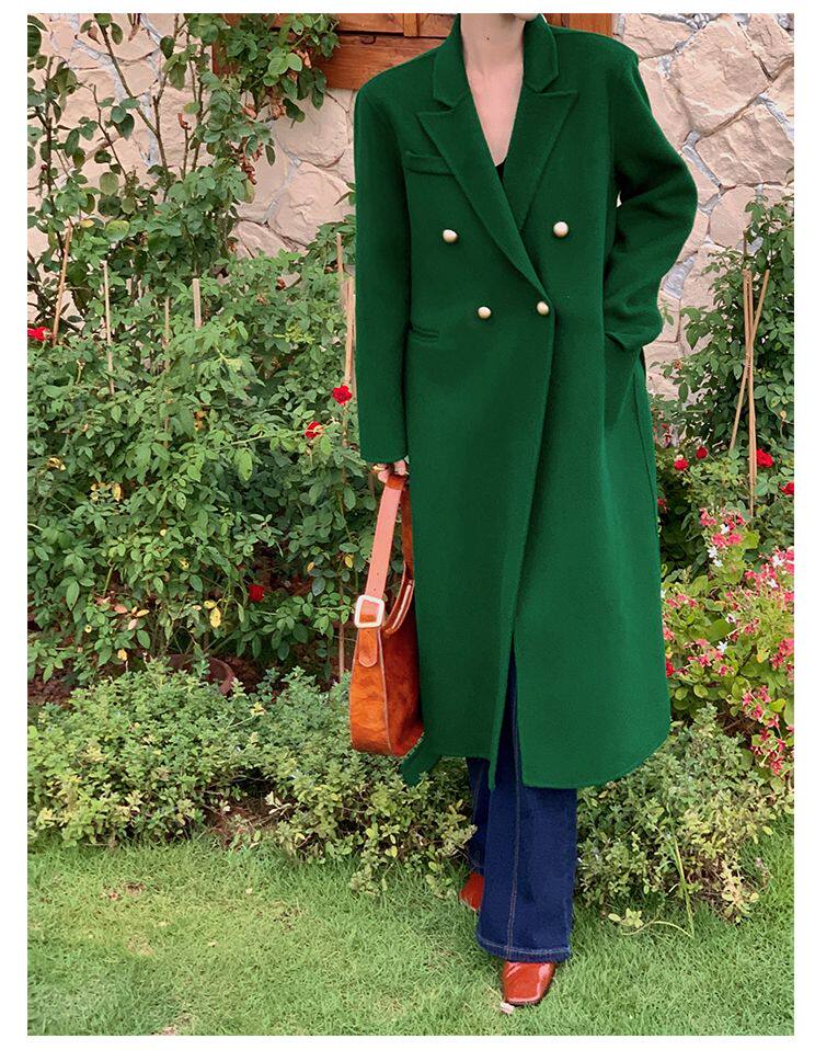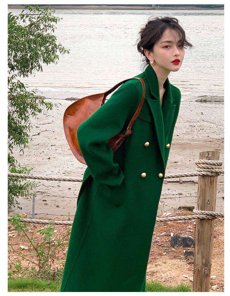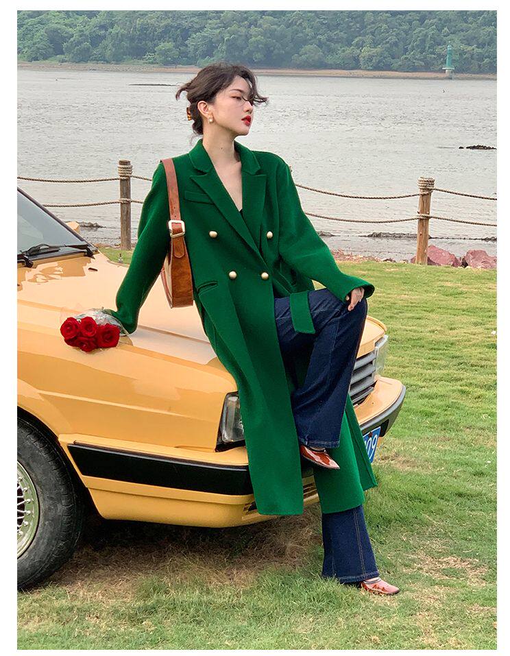 Длинный зеленый пиджак классического кроя, шерстяное пальто, куртка, коллекция 2022, изысканный стиль, подходит для подростков, средней длины