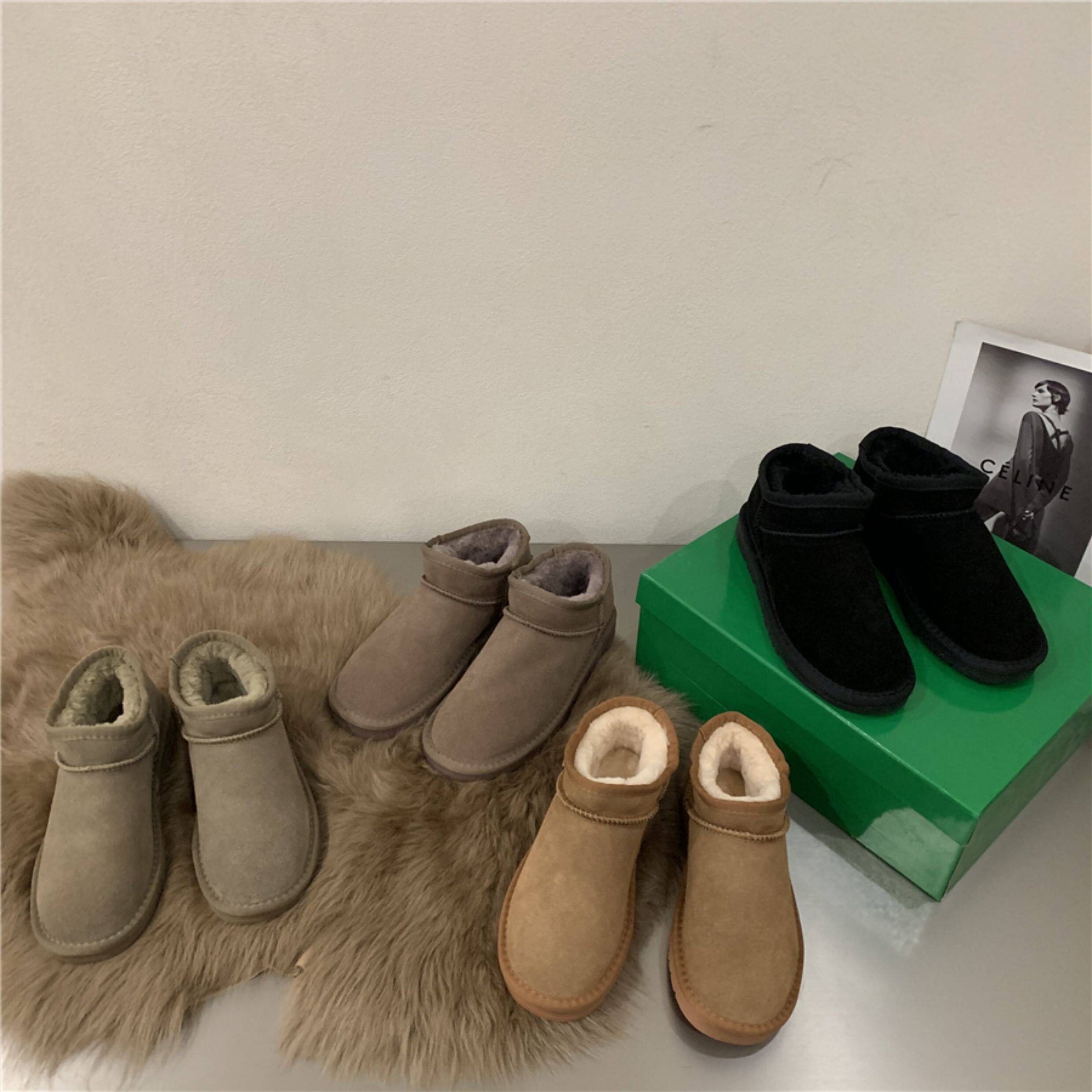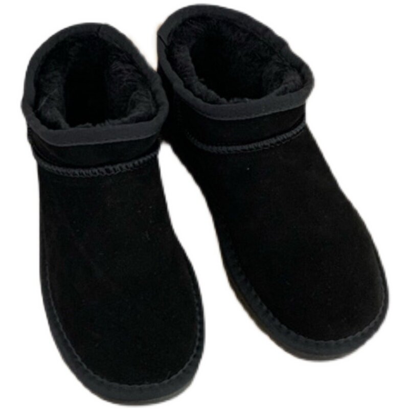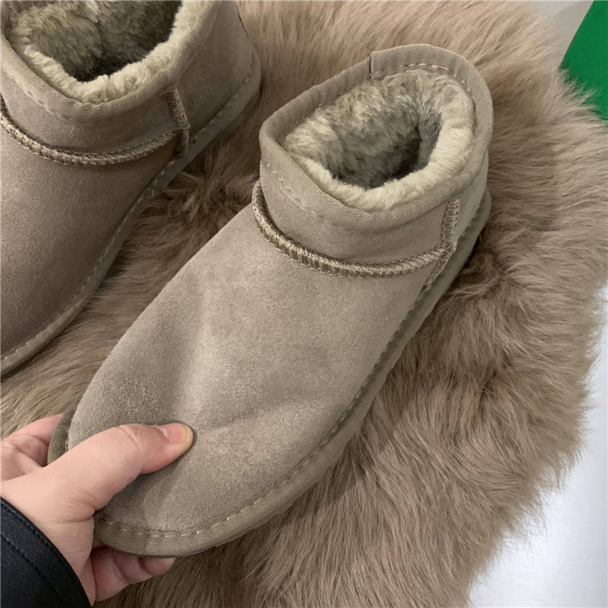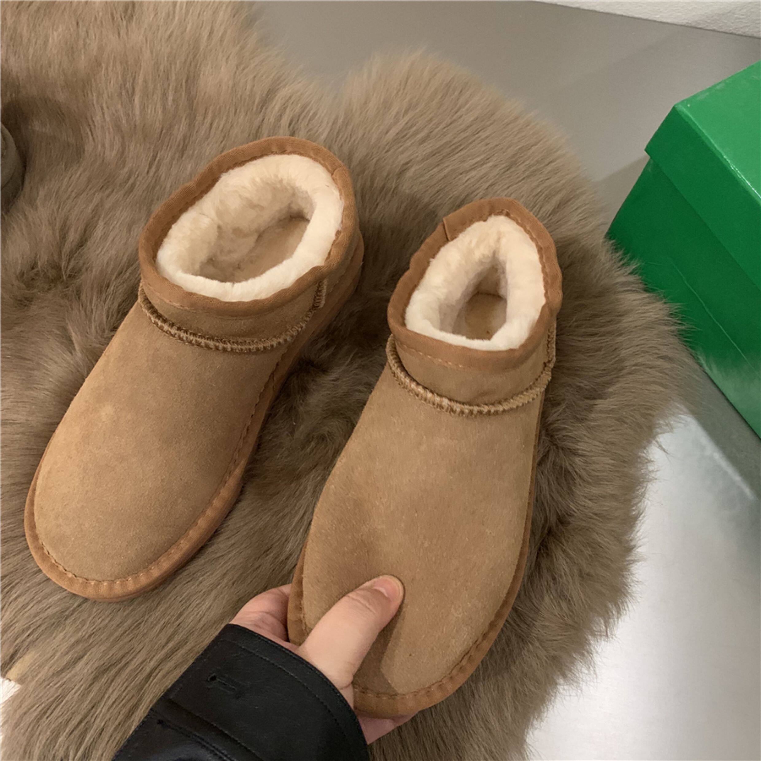 Флисовые кожаные короткие сапоги, удерживающие тепло ботинки, французский стиль