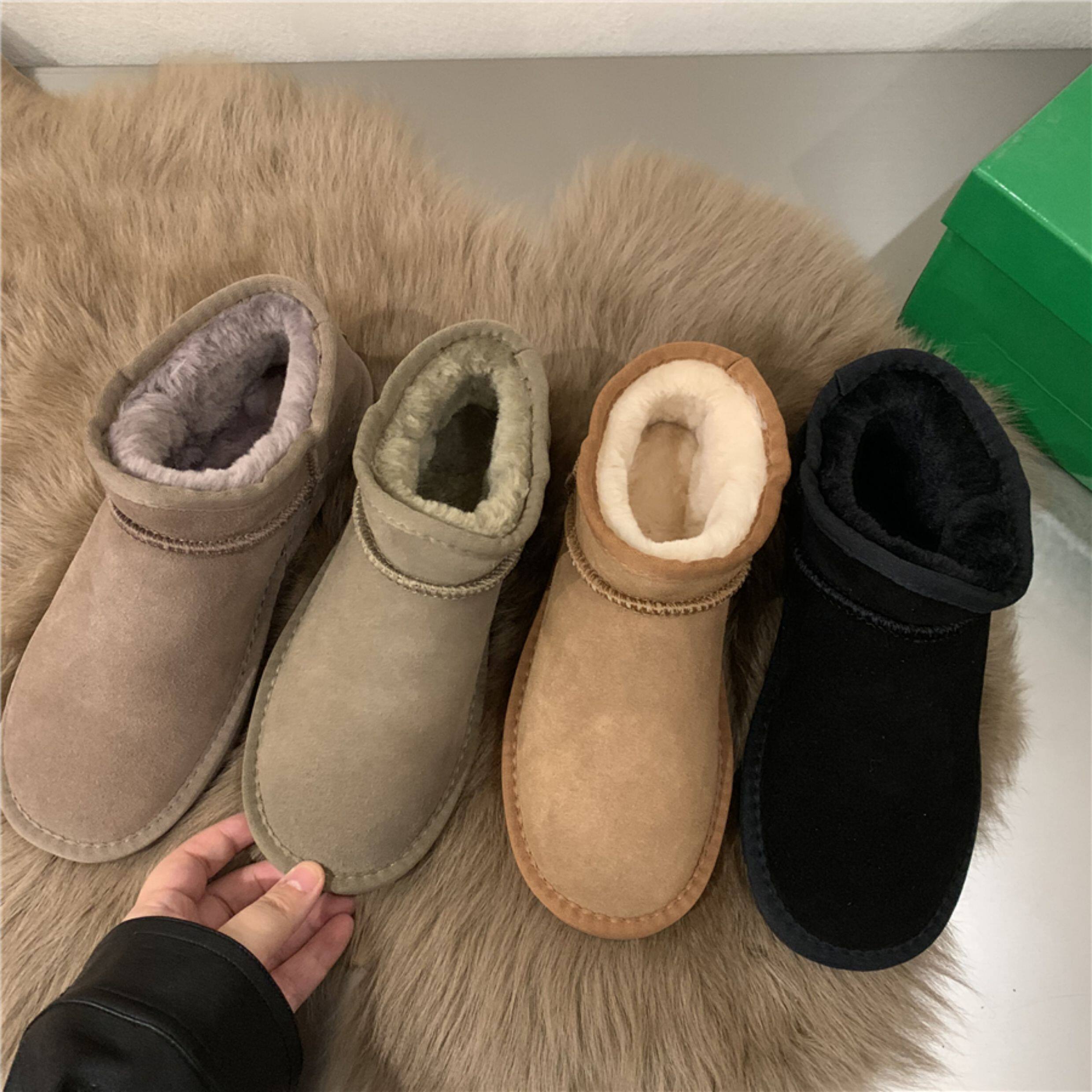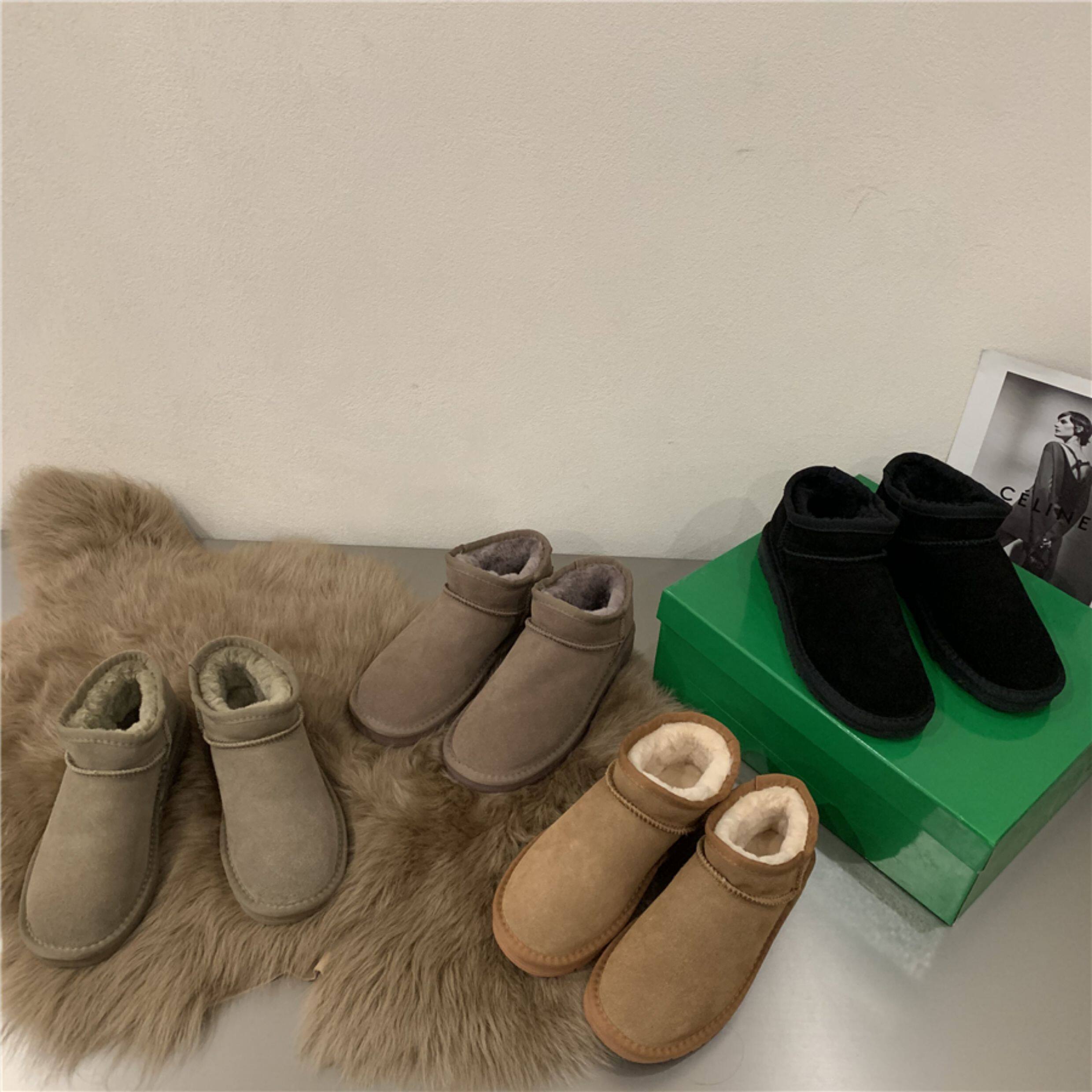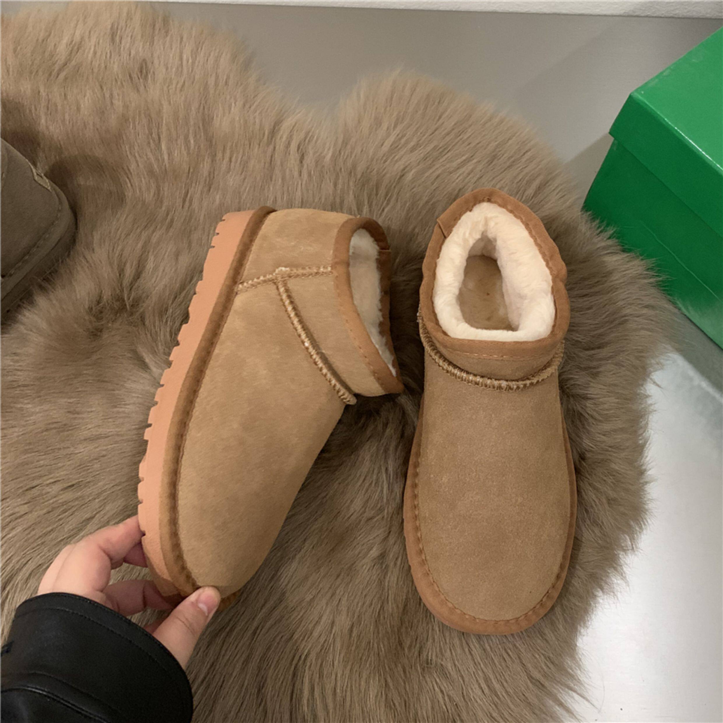 Флисовые кожаные короткие сапоги, удерживающие тепло ботинки, французский стиль