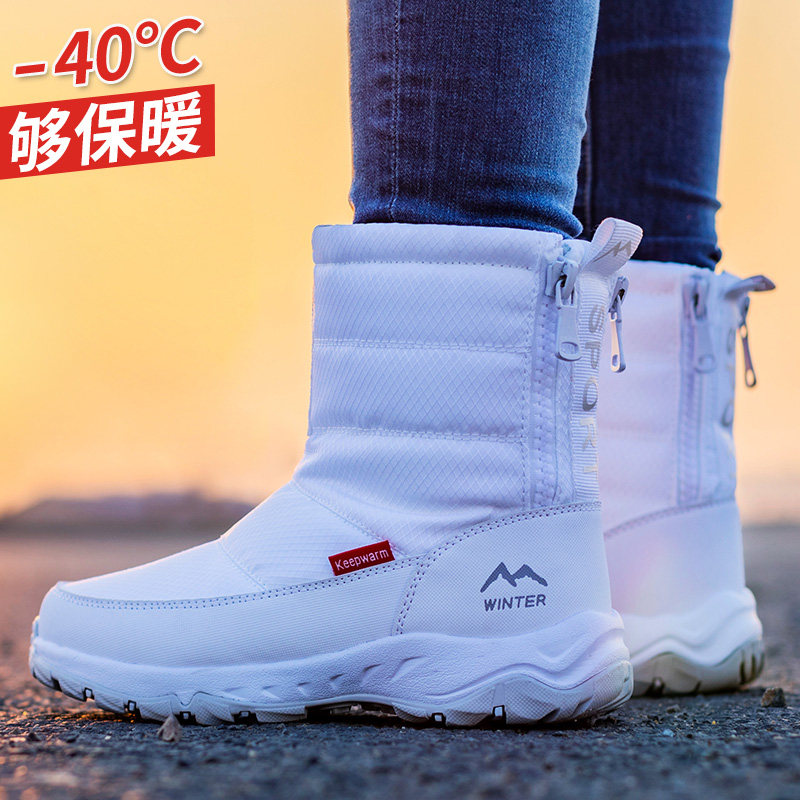 Зимние утепленные удерживающие тепло белые нескользящие сапоги