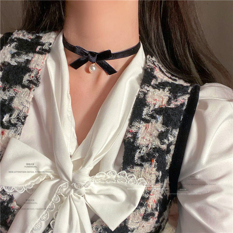 Ретро подвеска с бантиком из жемчуга, универсальный чокер, ожерелье, цепочка до ключиц