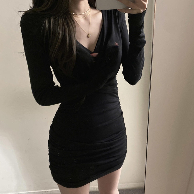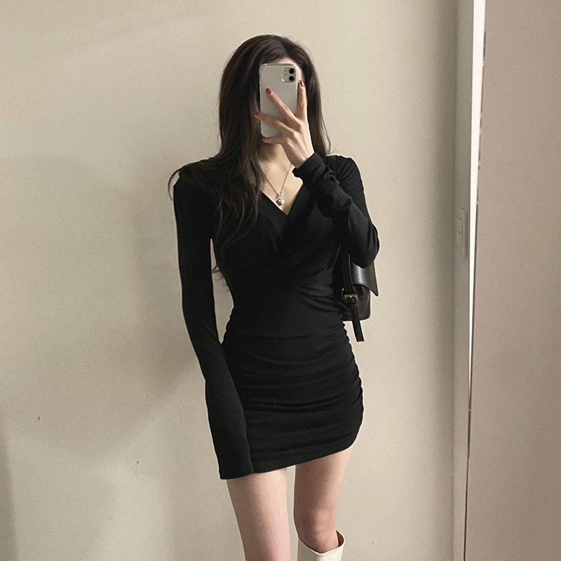 Базовый лонгслив, сексуальное платье, мини-юбка, осенний, большой размер, для транссексуалов, в обтяжку, с акцентом на бедрах