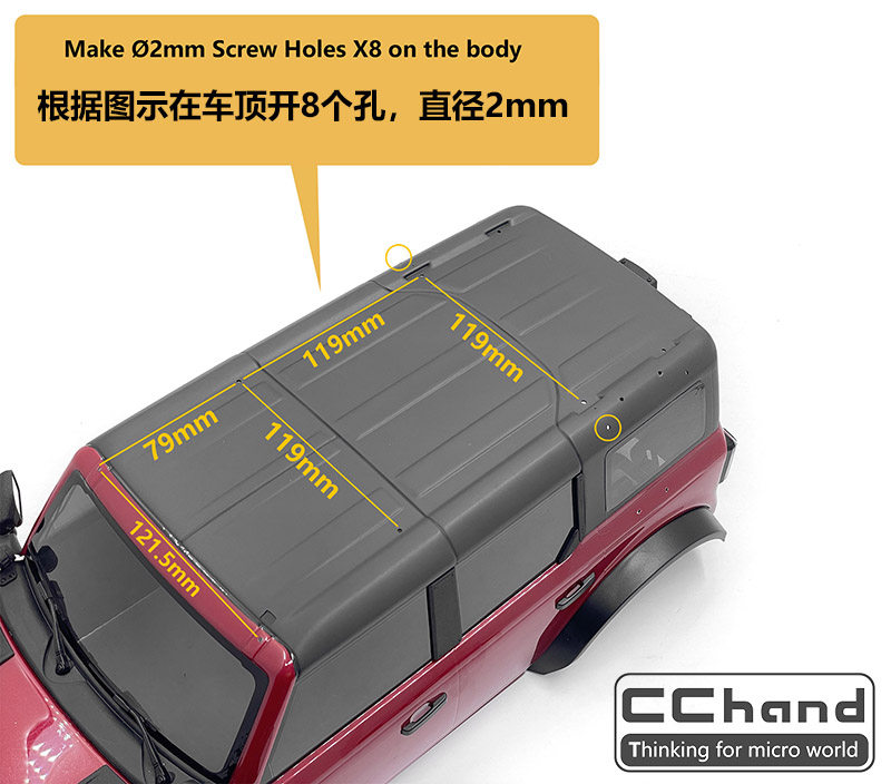 Необходимо просверлить отверстия на крыше в соответствии с иллюстрацией, и установки винтов включены.