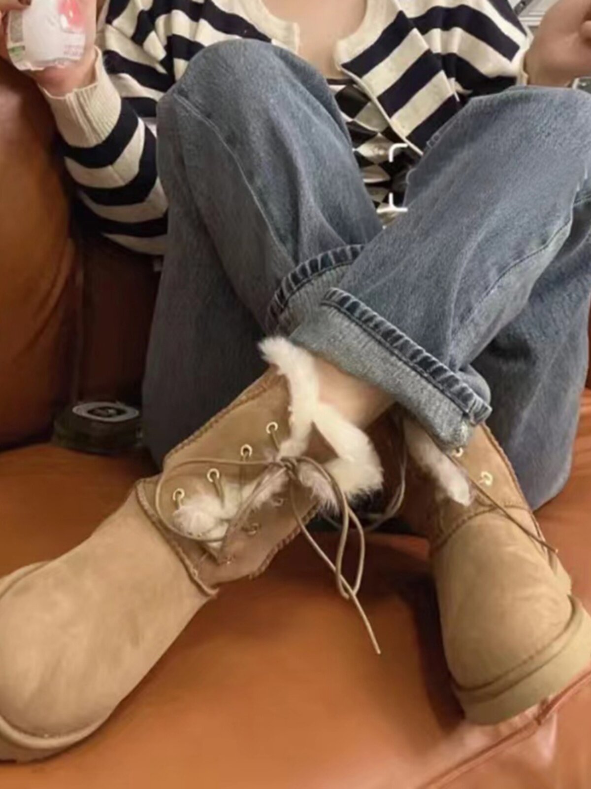Женские зимние сапоги в западном стиле. Зимние короткие ботинки 2024 года в новом стиле на плоской подошве и толстой подошве, а также бархатные и утолщенные северо-восточные хлопковые туфли на шнуровке.