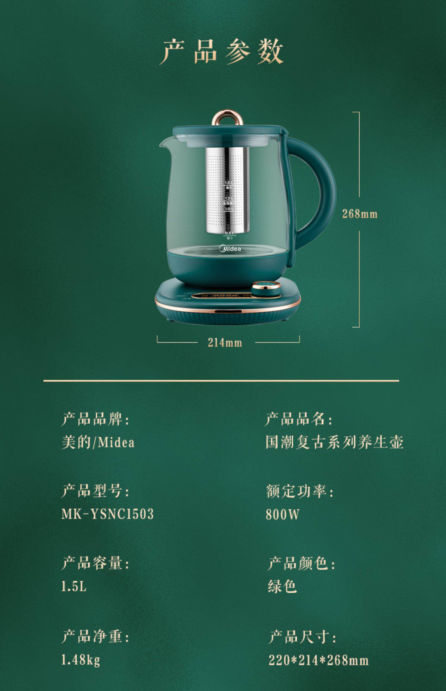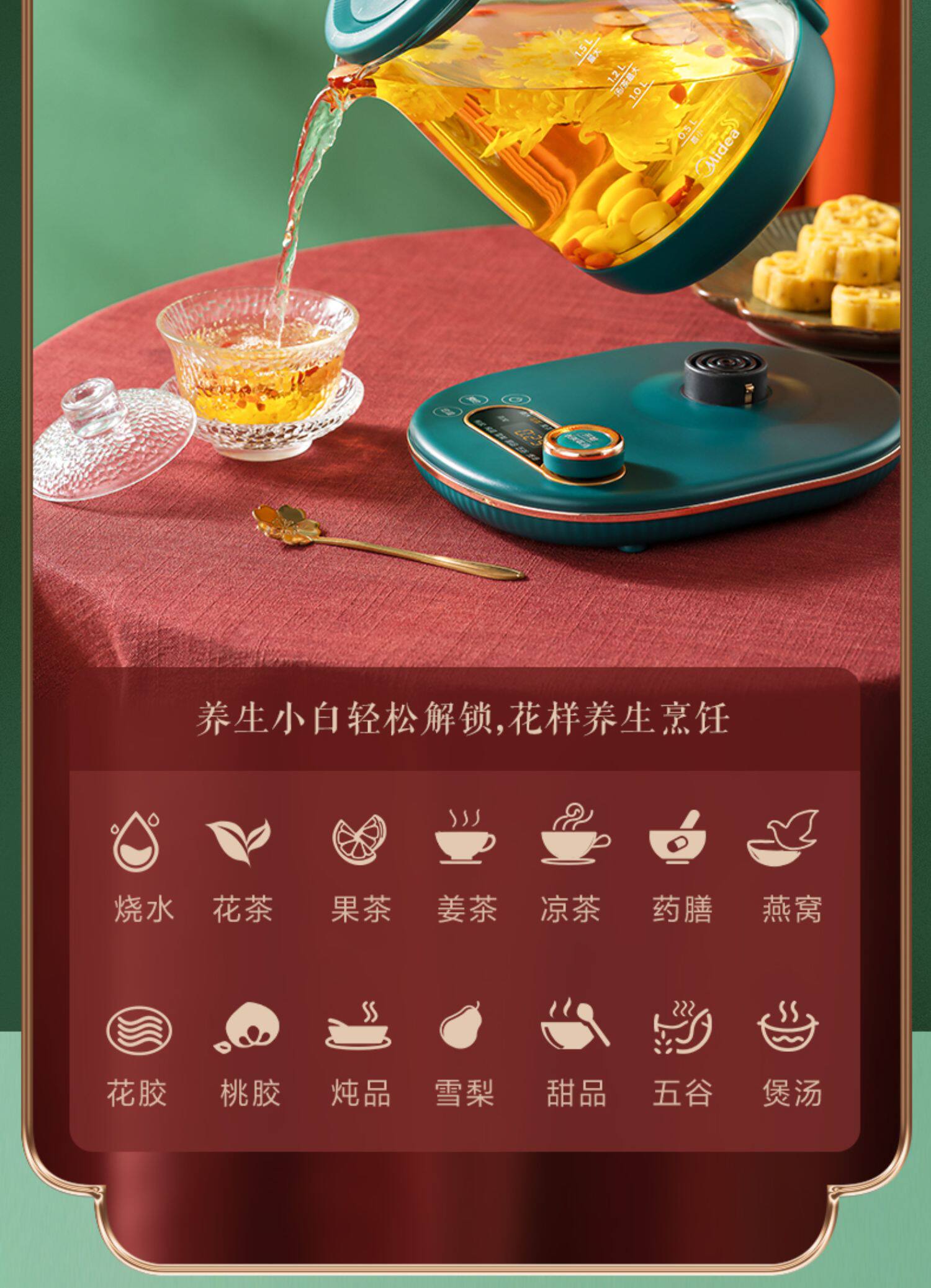 Midea Health Pot Glass Home Много -функциональное новое офисное вареного чая