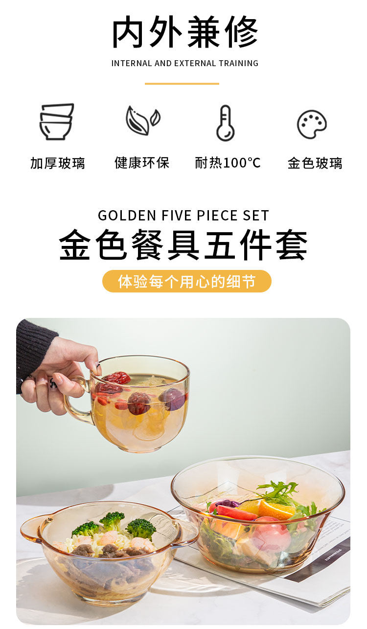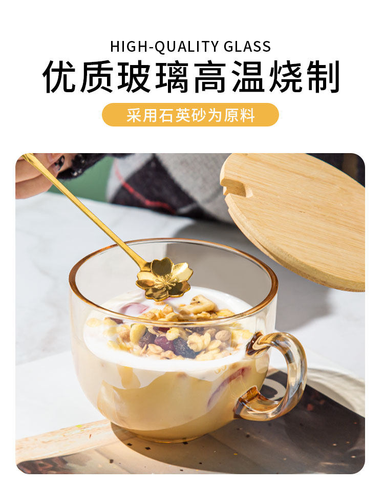 - Золотая чашка завтрака ❤ Бесплатная вишневая ложка+бамбуковая крышка