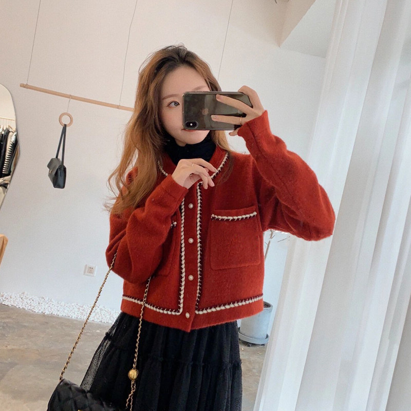 Модное ретро красное короткое шерстяное пальто, куртка, подходит для подростков