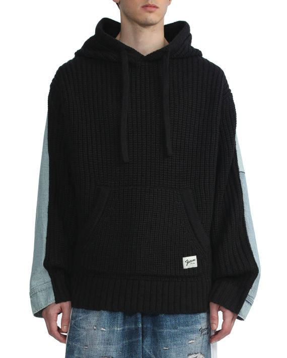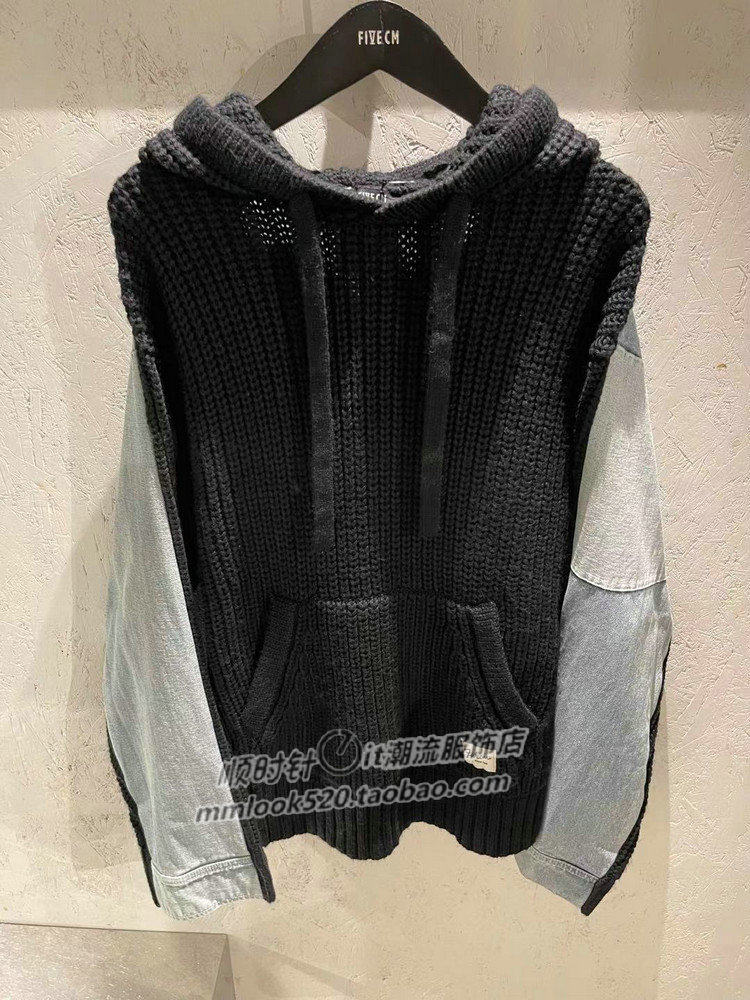 Демисезонная модная трендовая джинсовая трикотажная толстовка с капюшоном, свитер