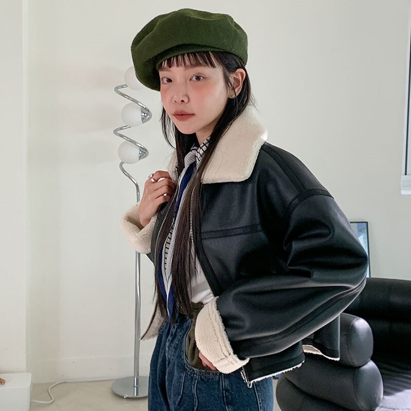 Официальный веб -сайт STYLELENANDA Южной Кореи приобретает настоящий 21 Winter New Demperament Flip -Collar Jupet Jacket