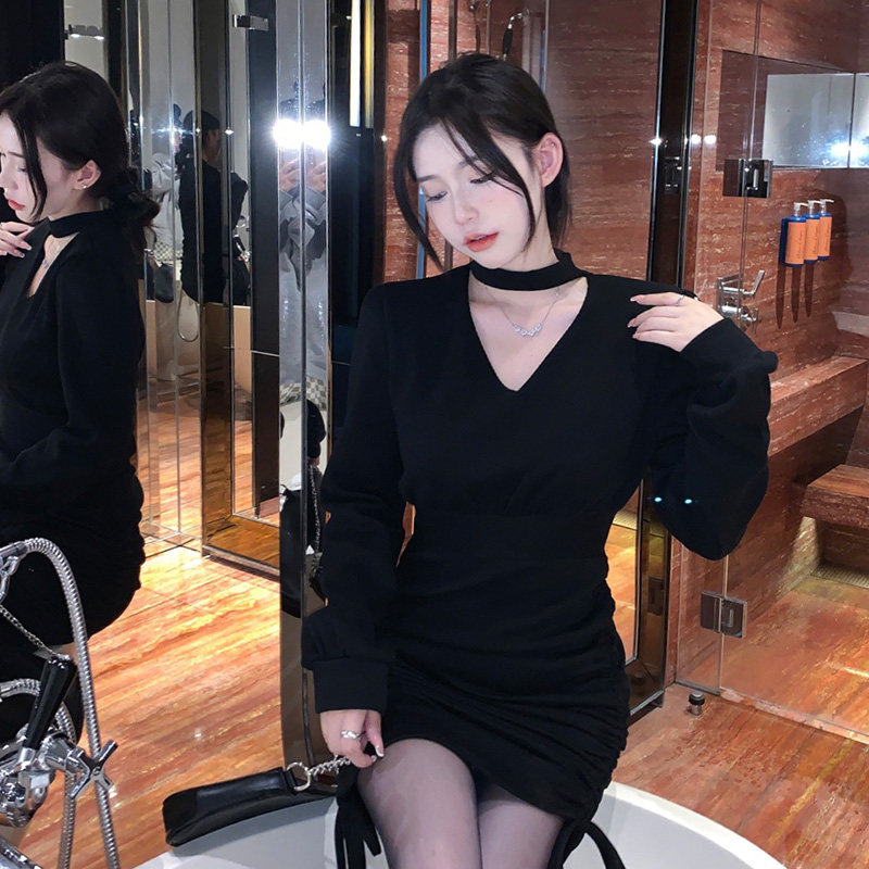 Зимнее платье большого размера, приталенный лонгслив, черный цветной корсет, 2022 года, с акцентом на бедрах