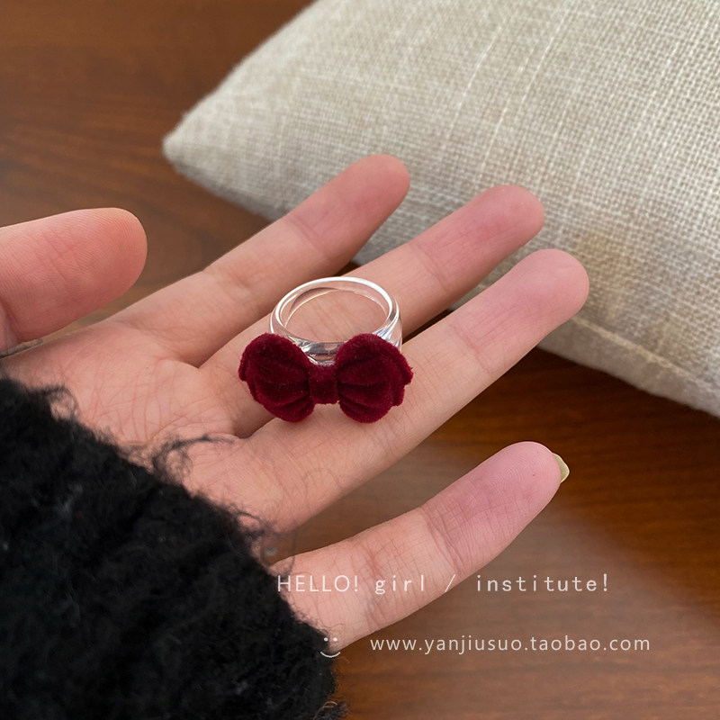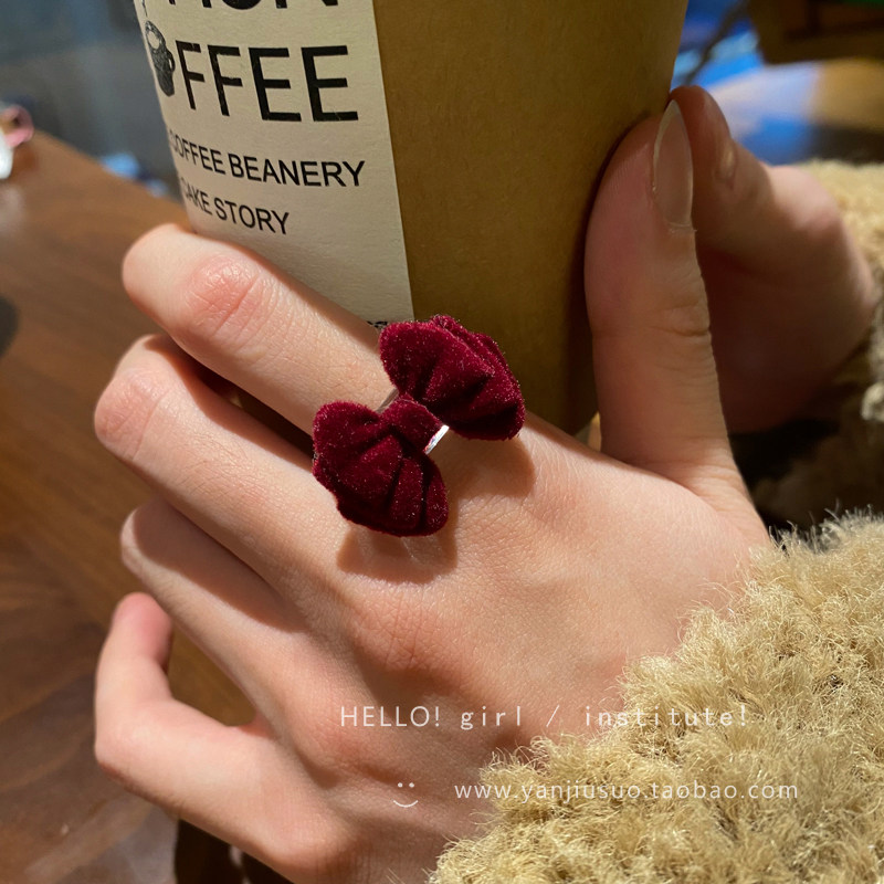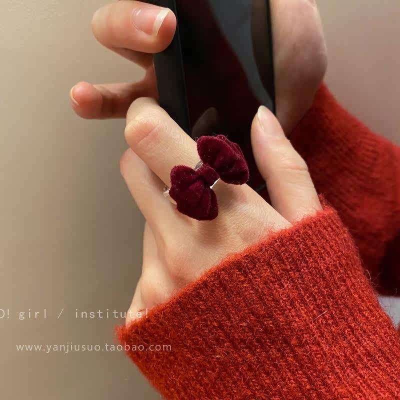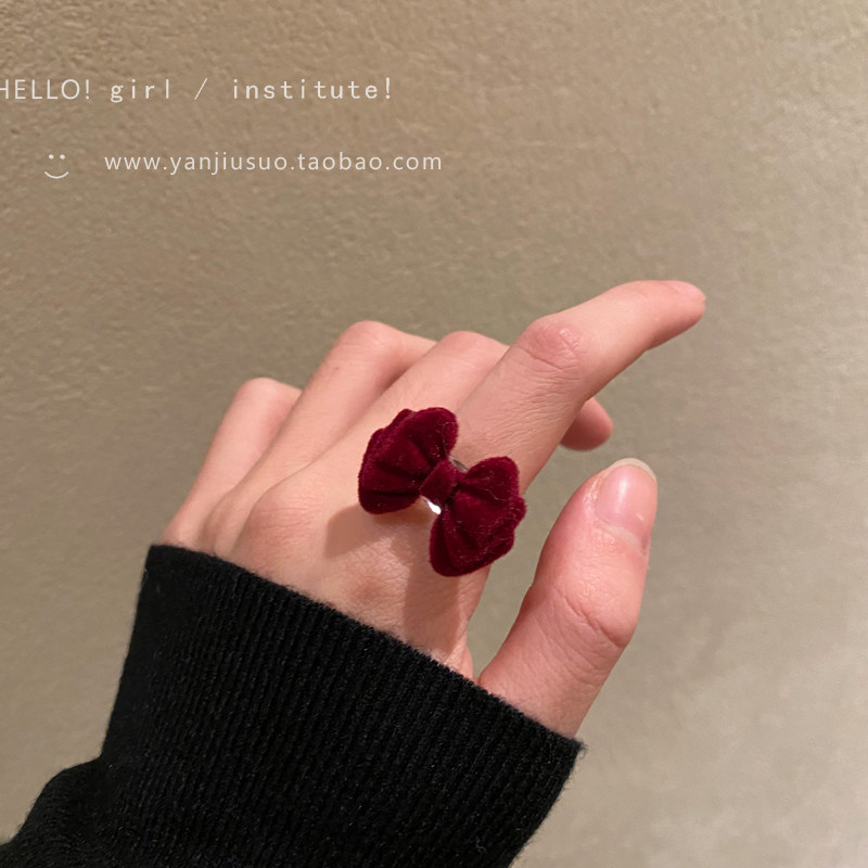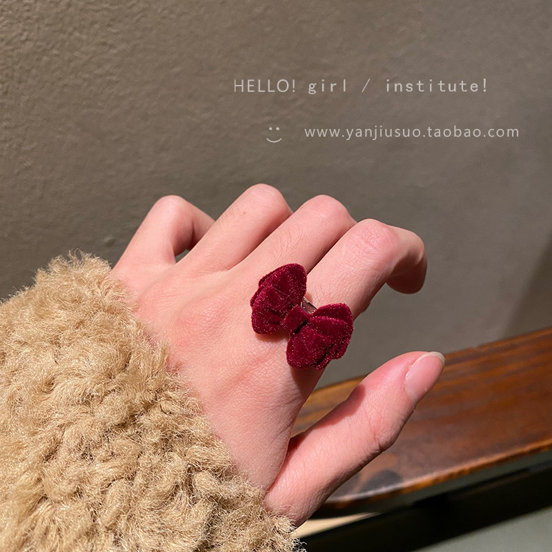 Бордовое демисезонное ретро небольшое дизайнерское универсальное кольцо с бантиком, французский стиль, простой и элегантный дизайн, на указательный палец