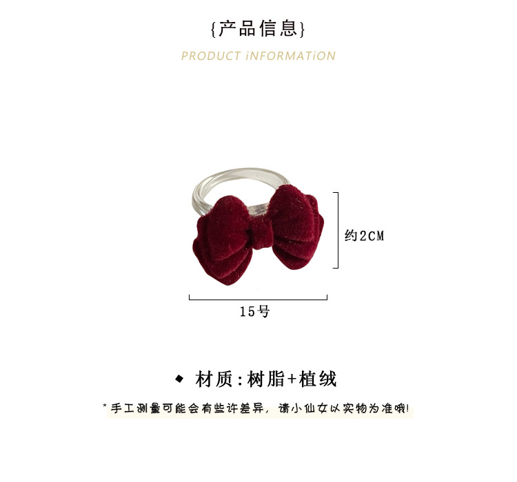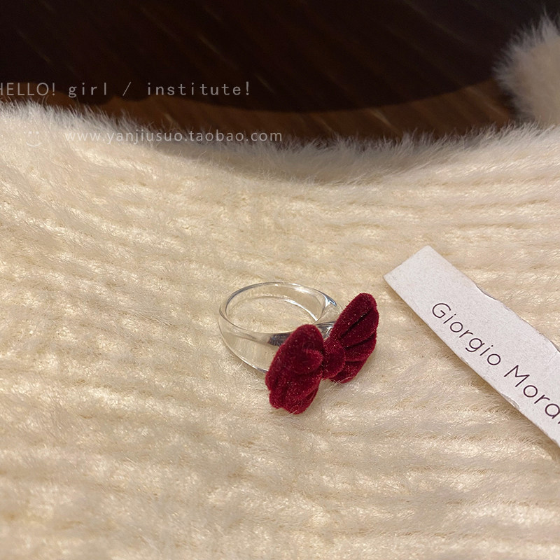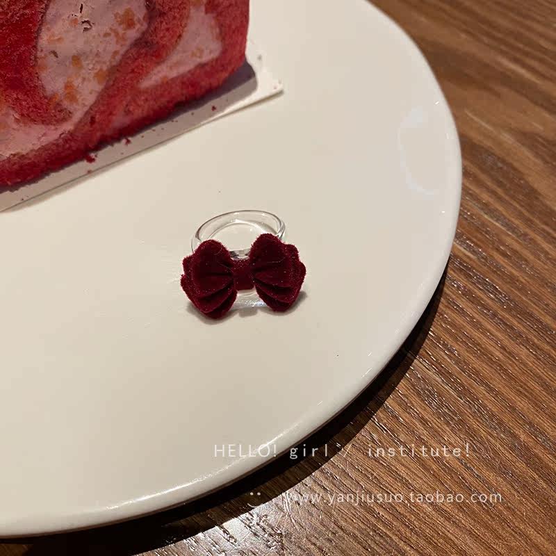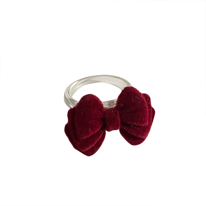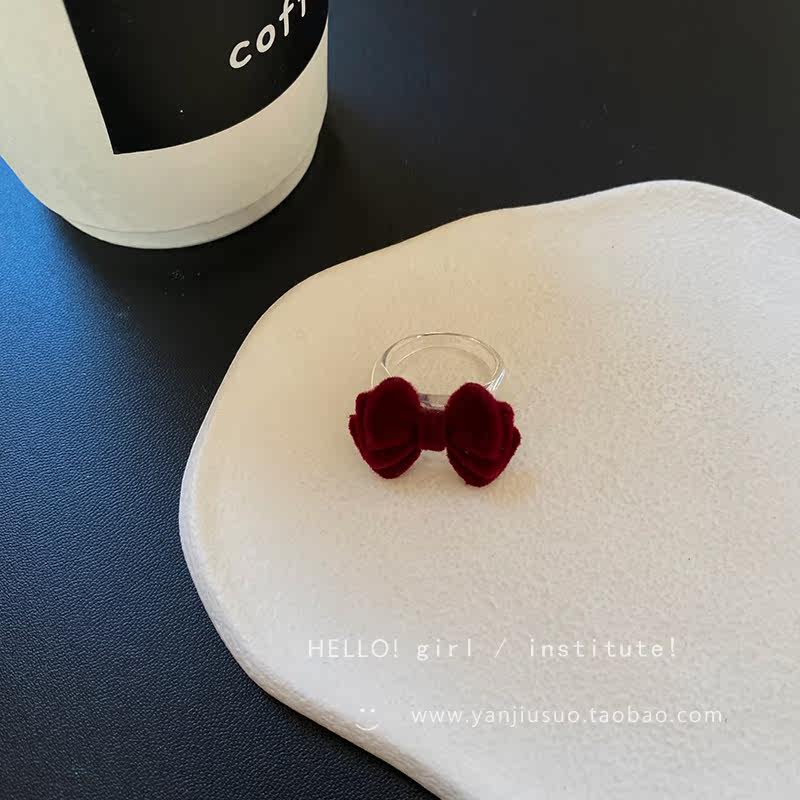 Бордовое демисезонное ретро небольшое дизайнерское универсальное кольцо с бантиком, французский стиль, простой и элегантный дизайн, на указательный палец