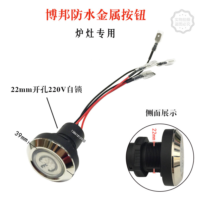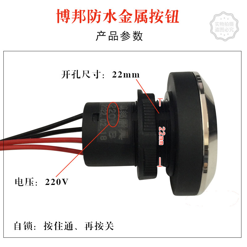 Водонепроницаемая кнопка, металлический переключатель, блок питания, 220v, 22мм