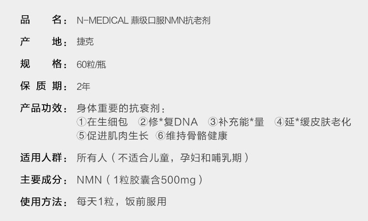 N-Medical Чешская NAD+капсула Высокое содержание 30 000 капсул 60 капсул тела 60