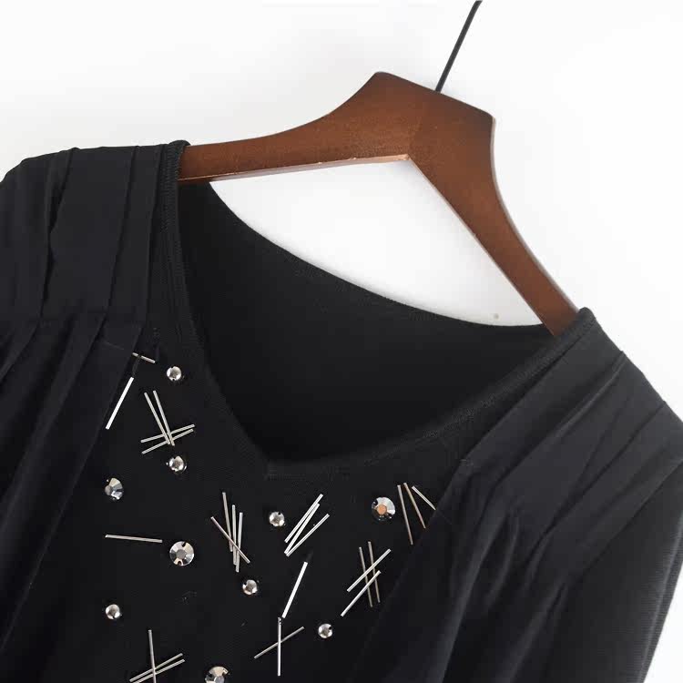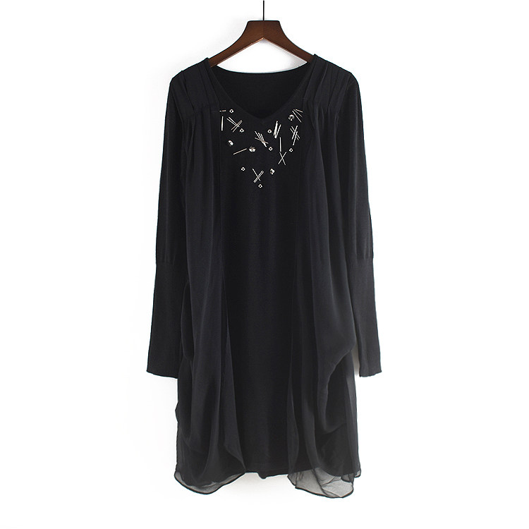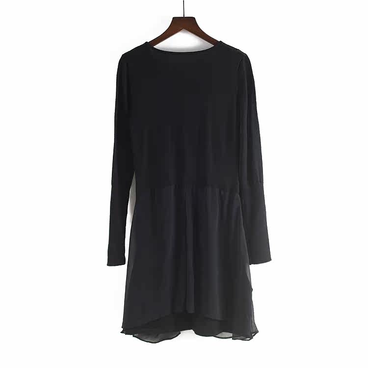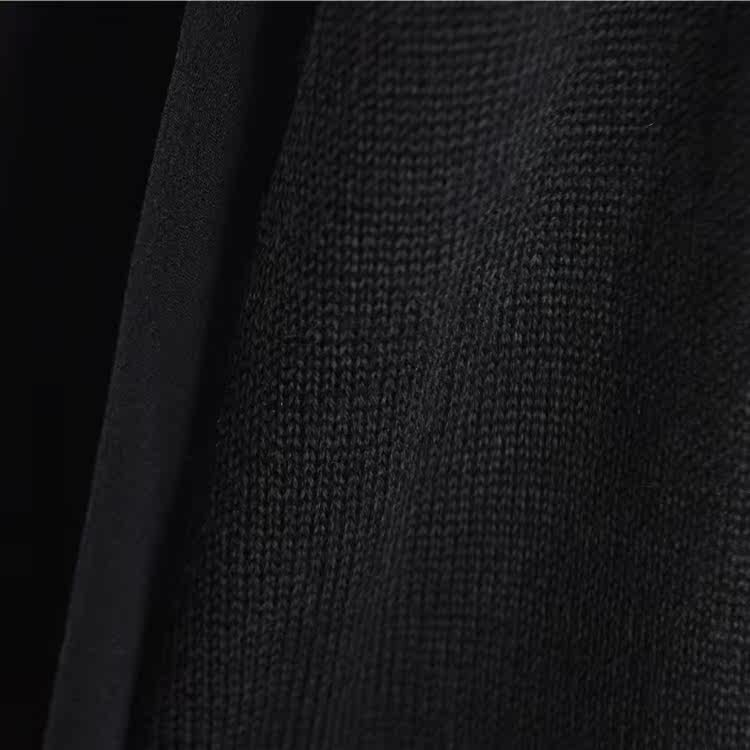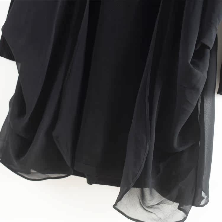 Шерстяной осенний длинный лонгслив, трикотажное платье, шифоновая черная юбка, в корейском стиле, средней длины