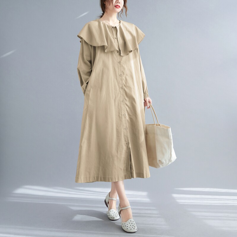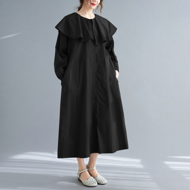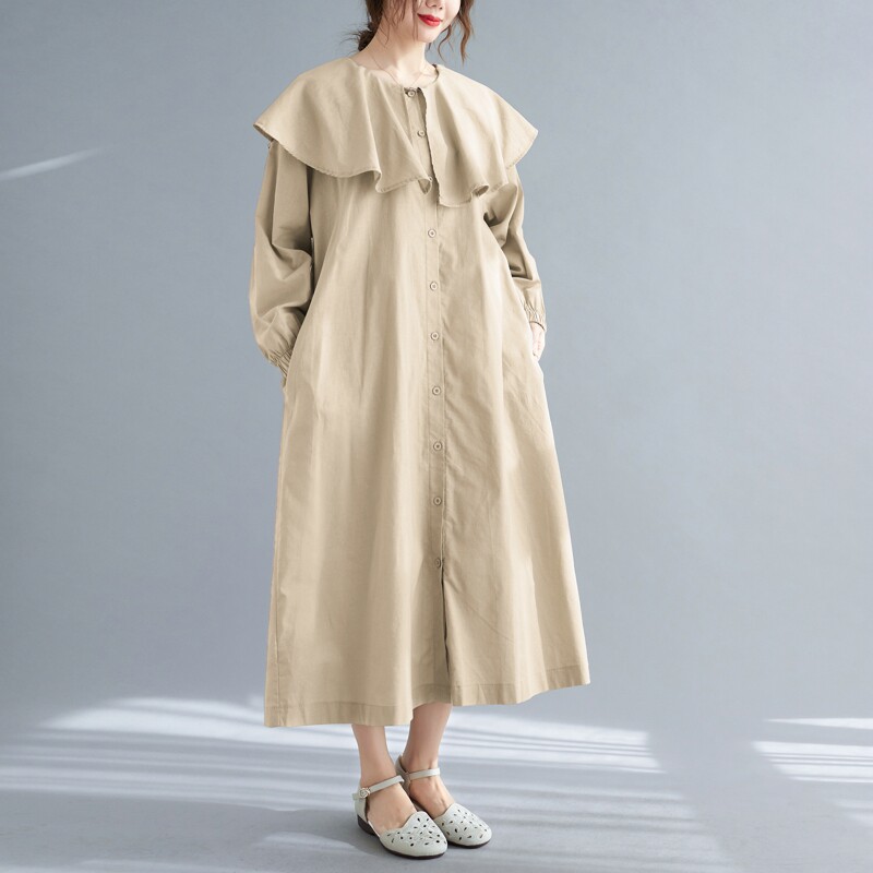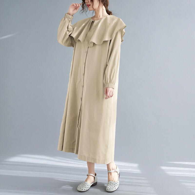 Весеннее платье с круглым воротником, большой размер, свободный крой