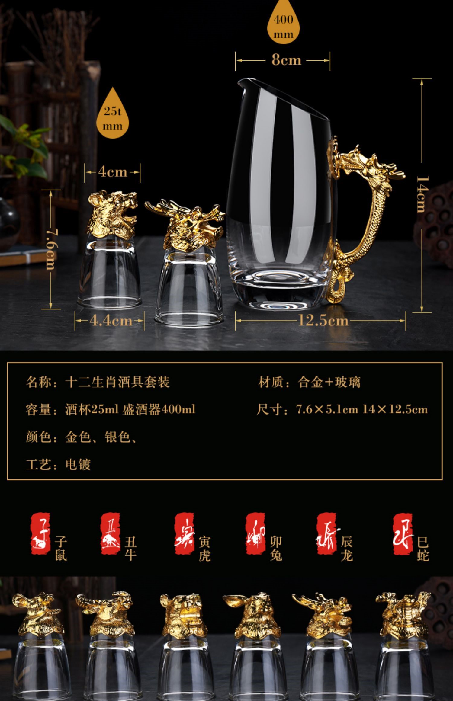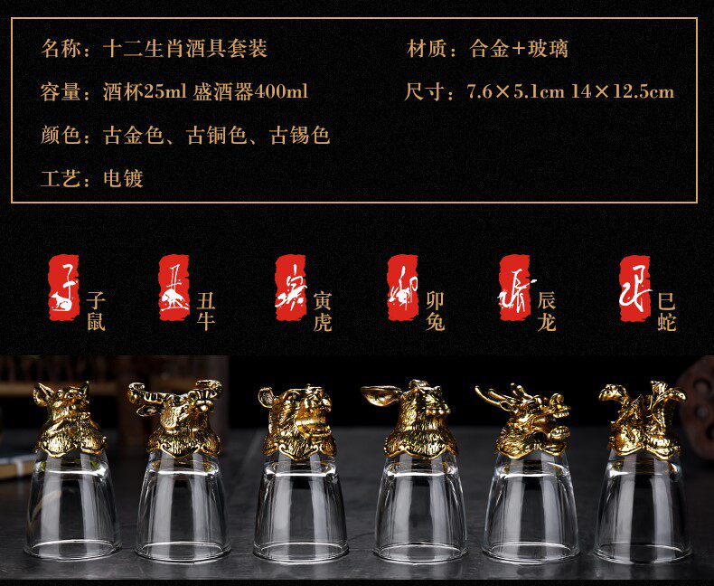 Бокал, диспенсер для вина, стеклянный комплект, стопка, китайский гороскоп, китайский стиль