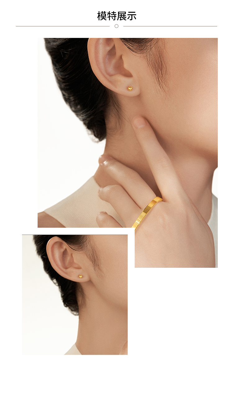 周大福 Xiaodou dou golden pearl gold ears regrings Золотые серьги Женская оценка EOF683 Новый год подарок