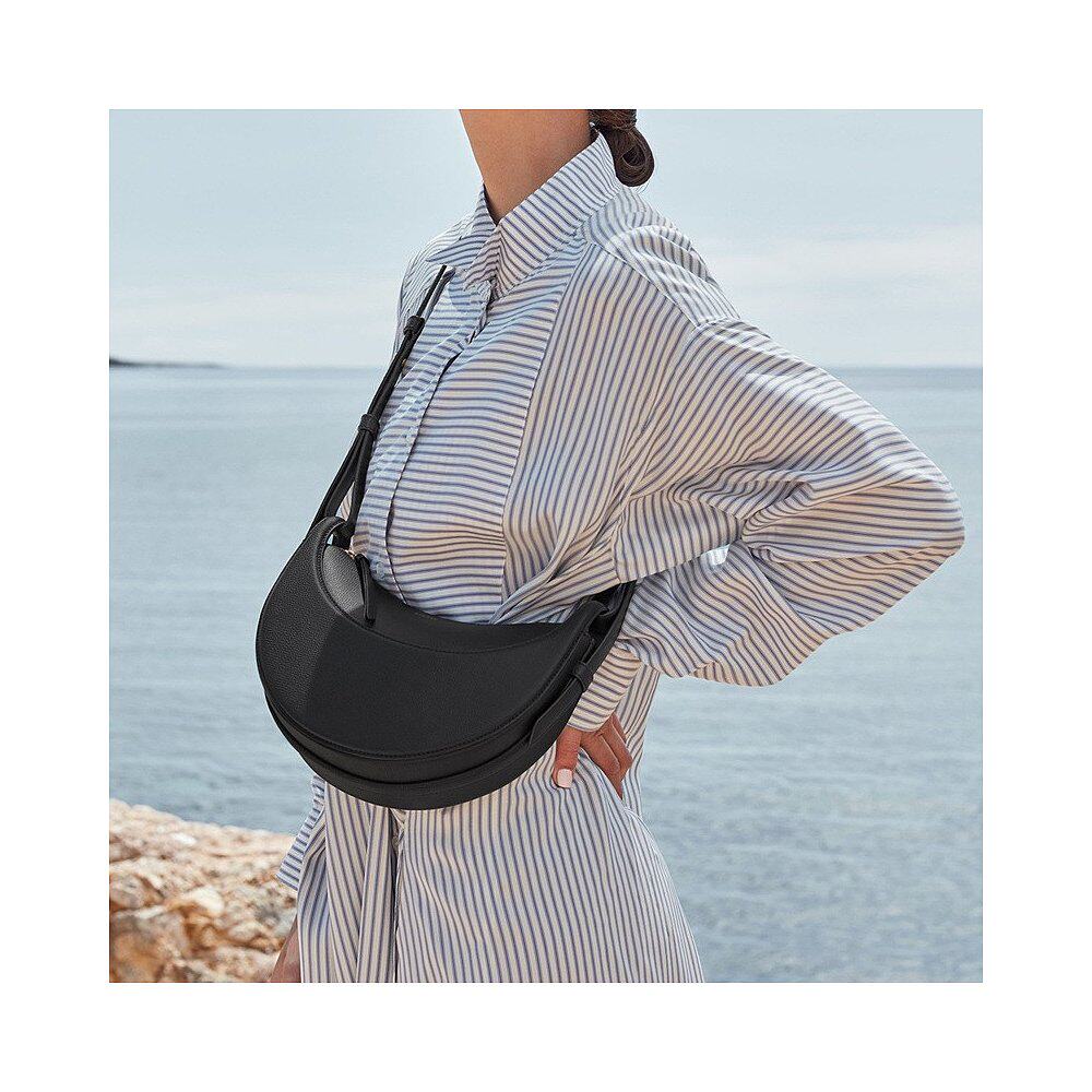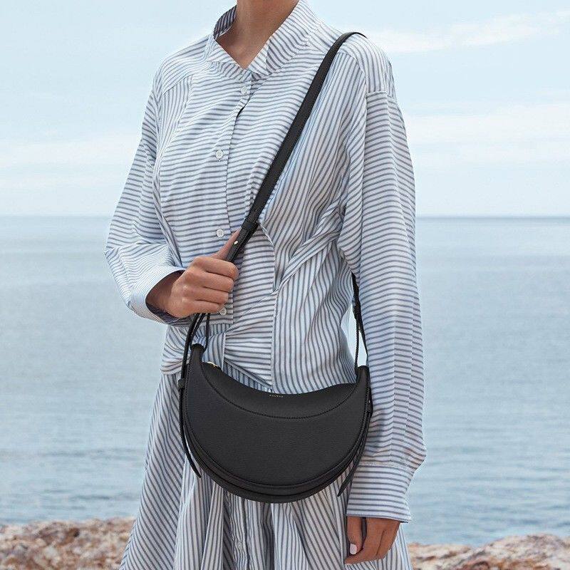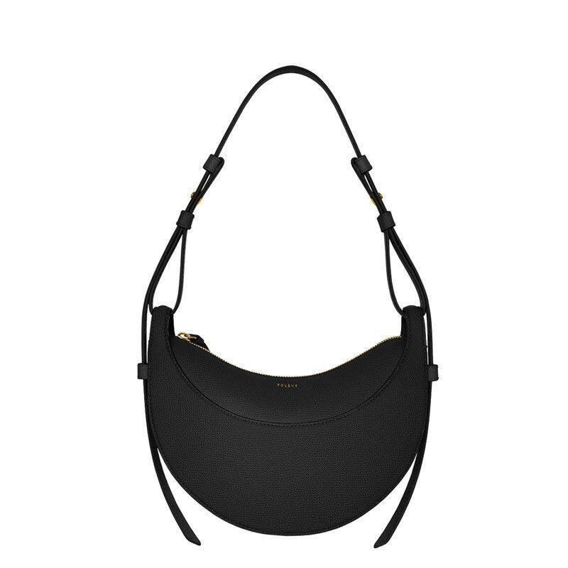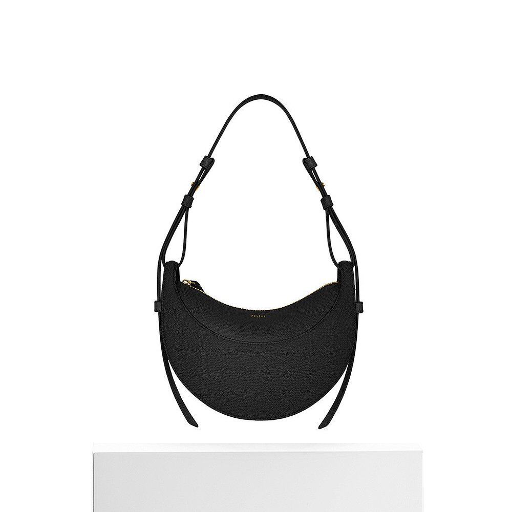 Европейская прямая почтовая рассылка Сумка в форме полумесяца POLENE Numéro Dix черного цвета из шагреневой телячьей кожи