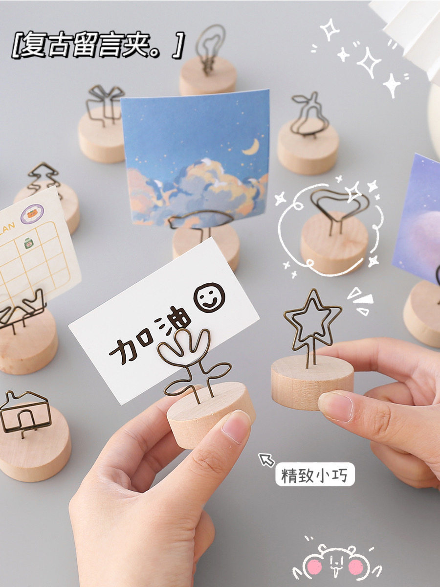 Креативный деревянный ретро-держатель для сообщений, держатель для заметок, простой и милый держатель для фотографий, настольный вертикальный маленький зажим, декоративные украшения