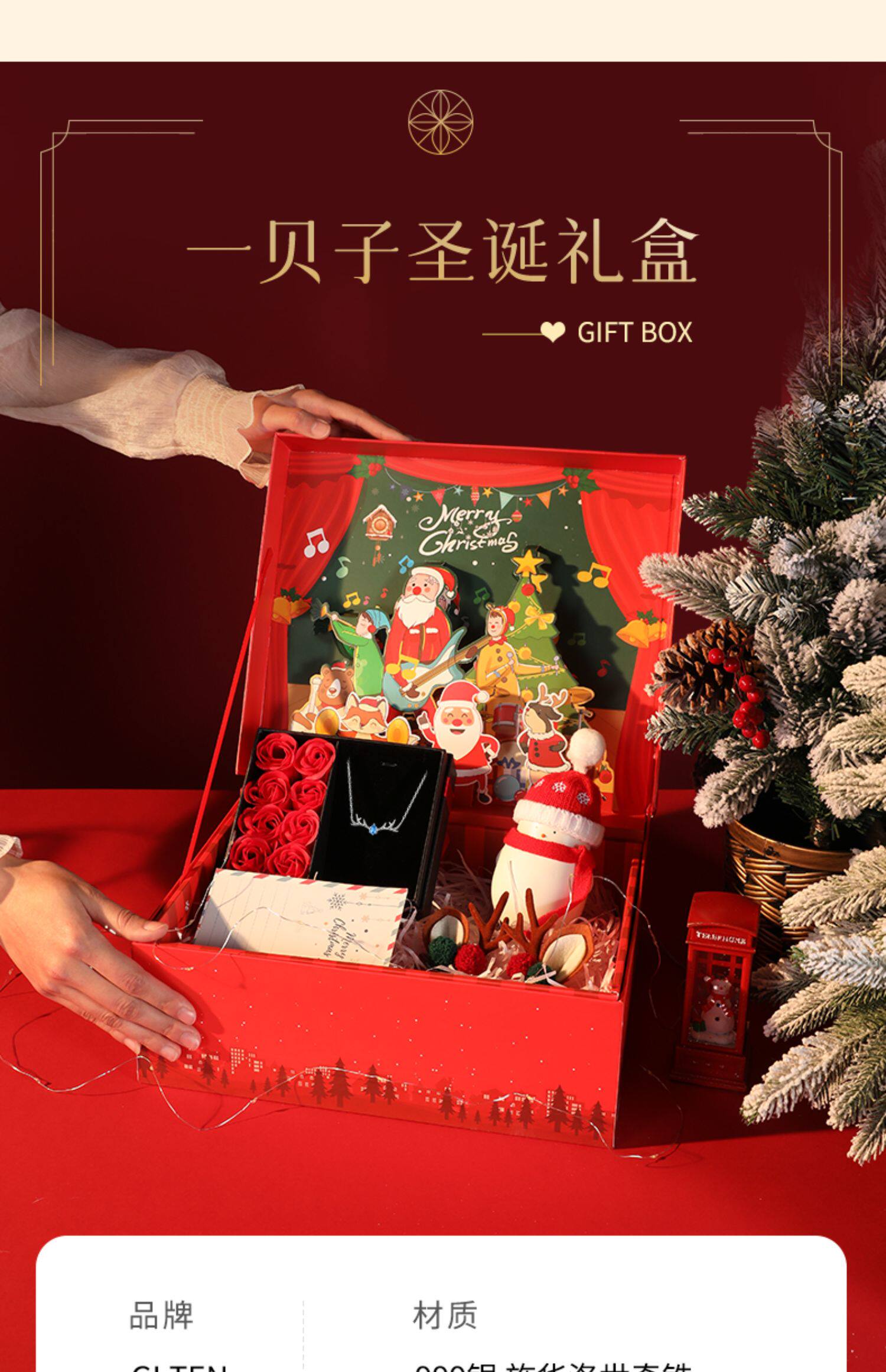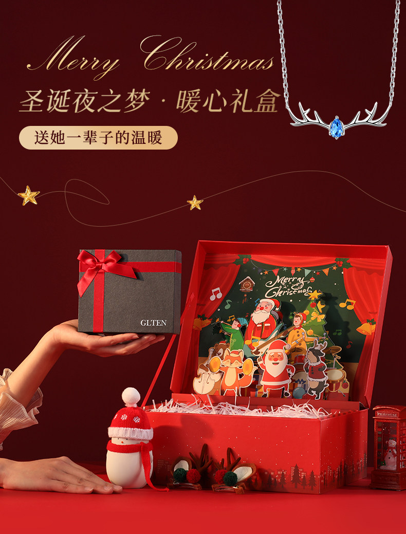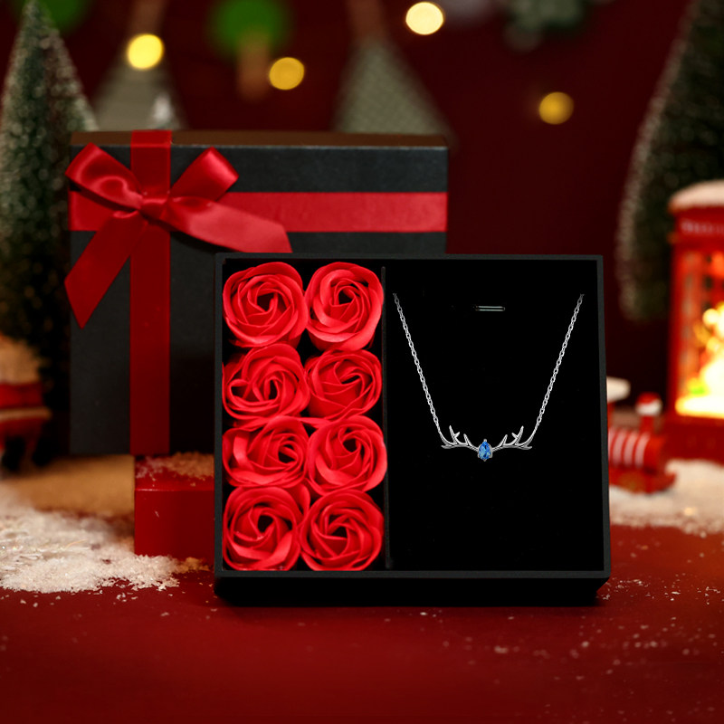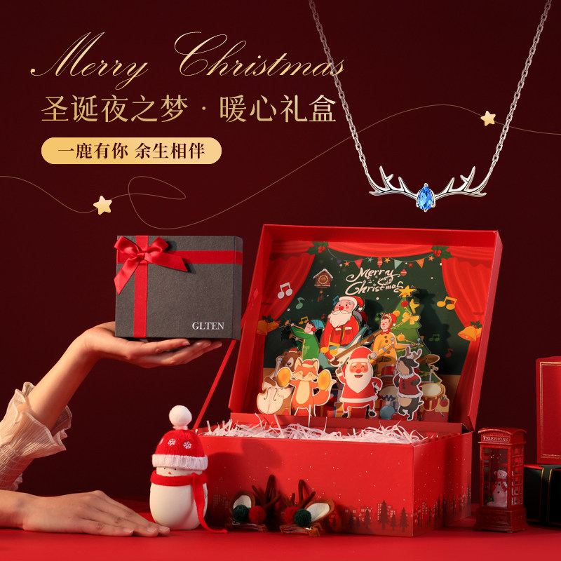 - [Согреть ее пожизненную подарочную коробку] У оленя есть ожерелье+рождественское сокровище сокровища+карта выпуска лося