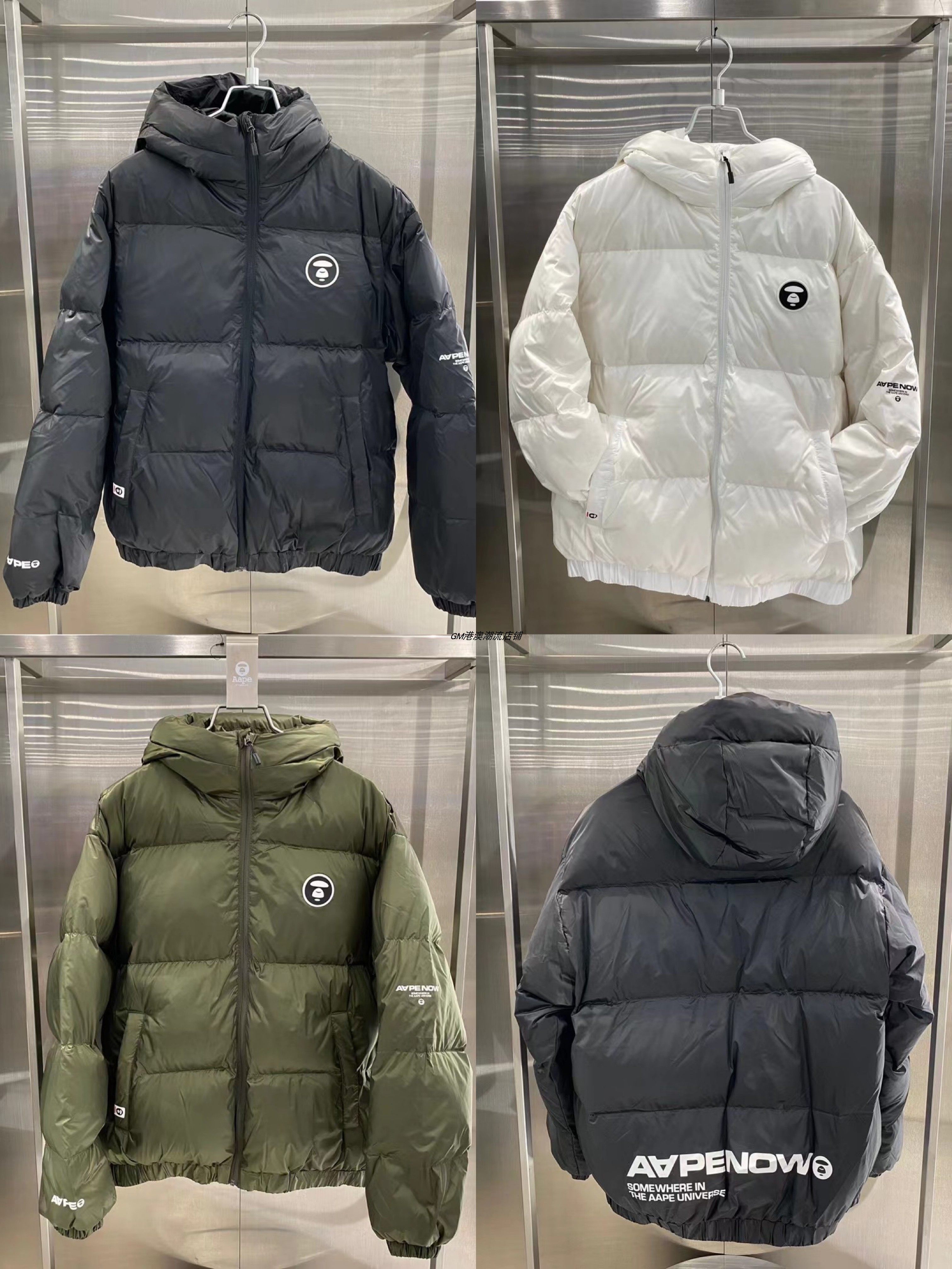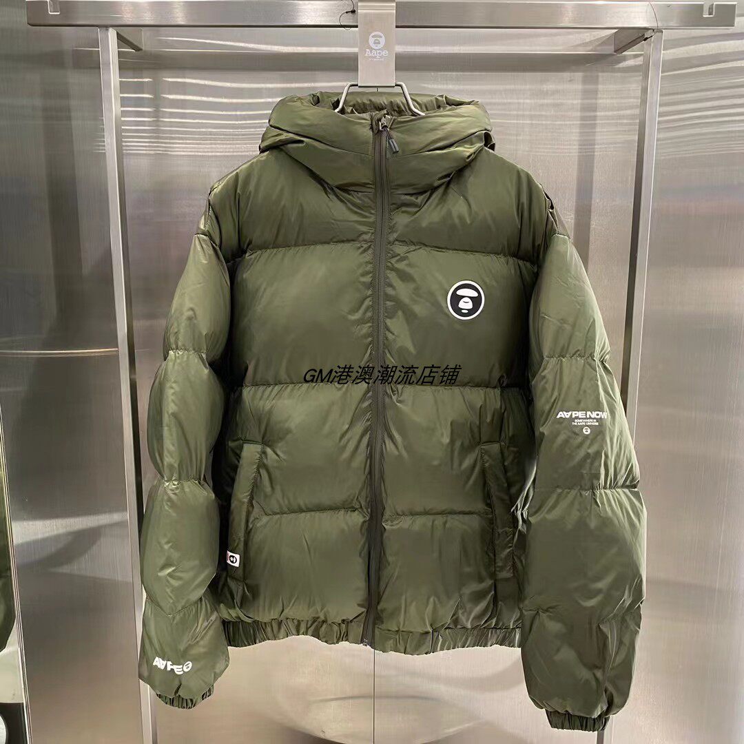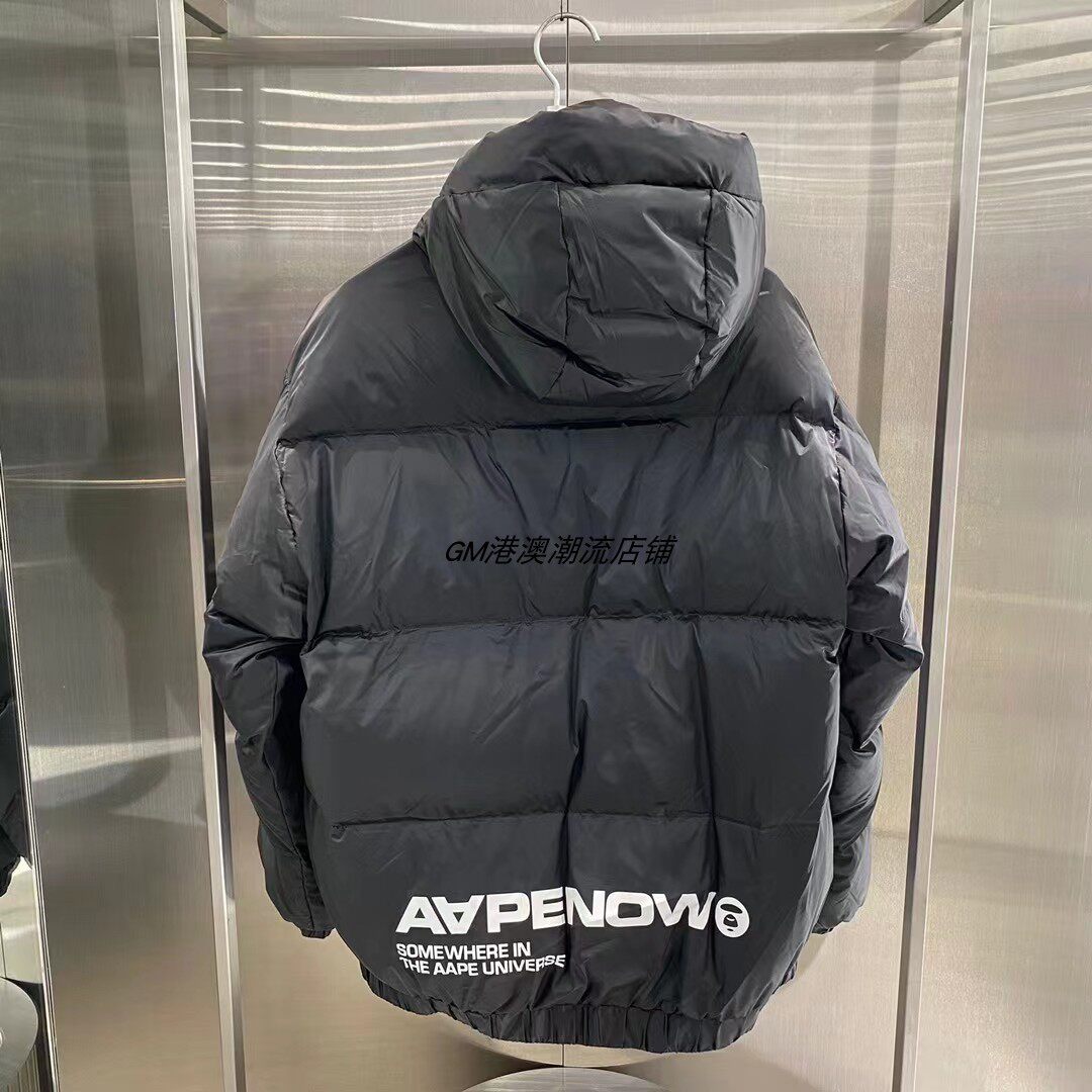 GM store Aape, мужской осенне-зимний осенне-зимний однотонный свободный толстый пуховик с капюшоном и буквенным принтом в виде обезьяны 7480XXH