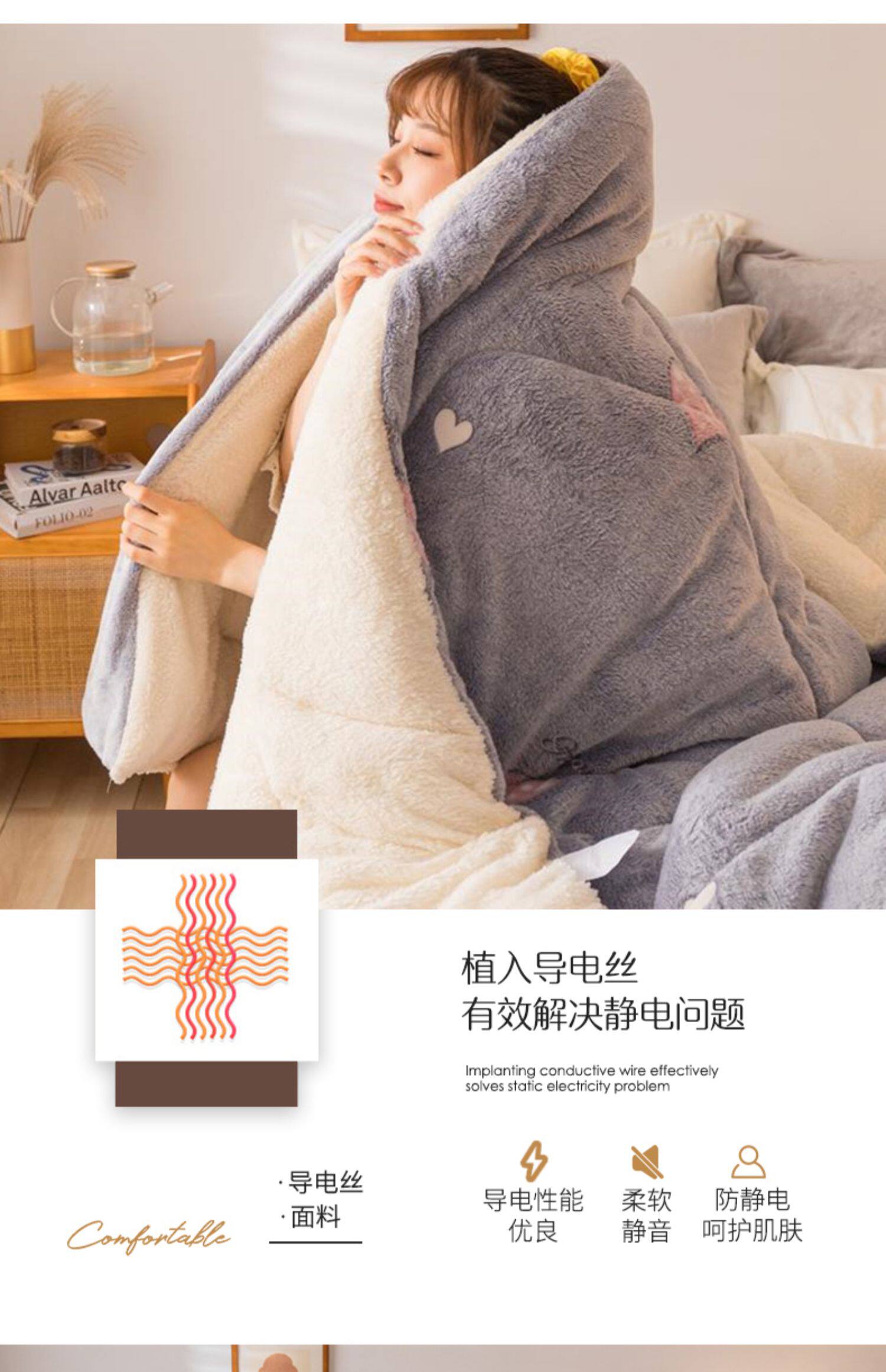 - 200X230см10кг [утолщенный двусторонний бархат, быстрый нагрев 3 секунды]