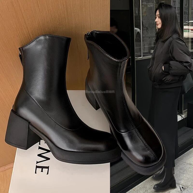 Martens, черные универсальные короткие сапоги в английском стиле, Гонконг, в британском стиле, из натуральной кожи, модель весна/осень 2024 года