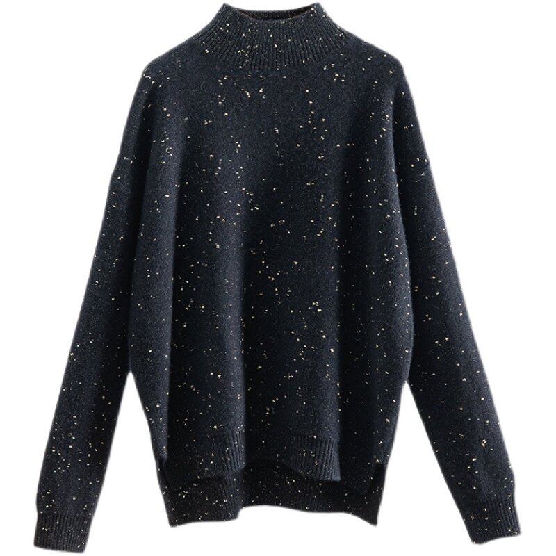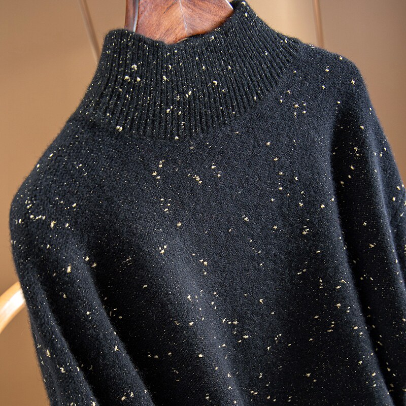Изысканный черный кашемировый базовый приятный телу свитер, изысканный стиль, высокий воротник