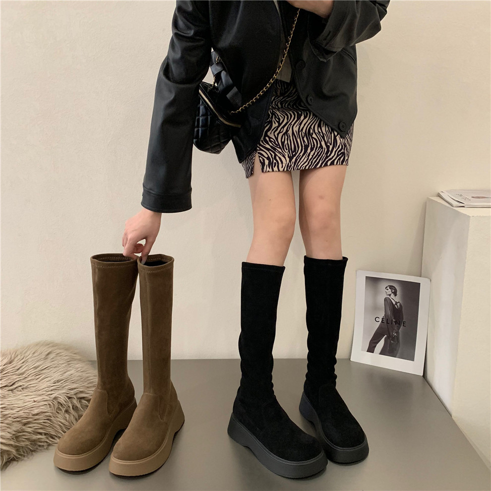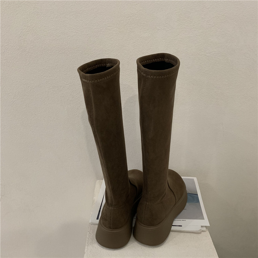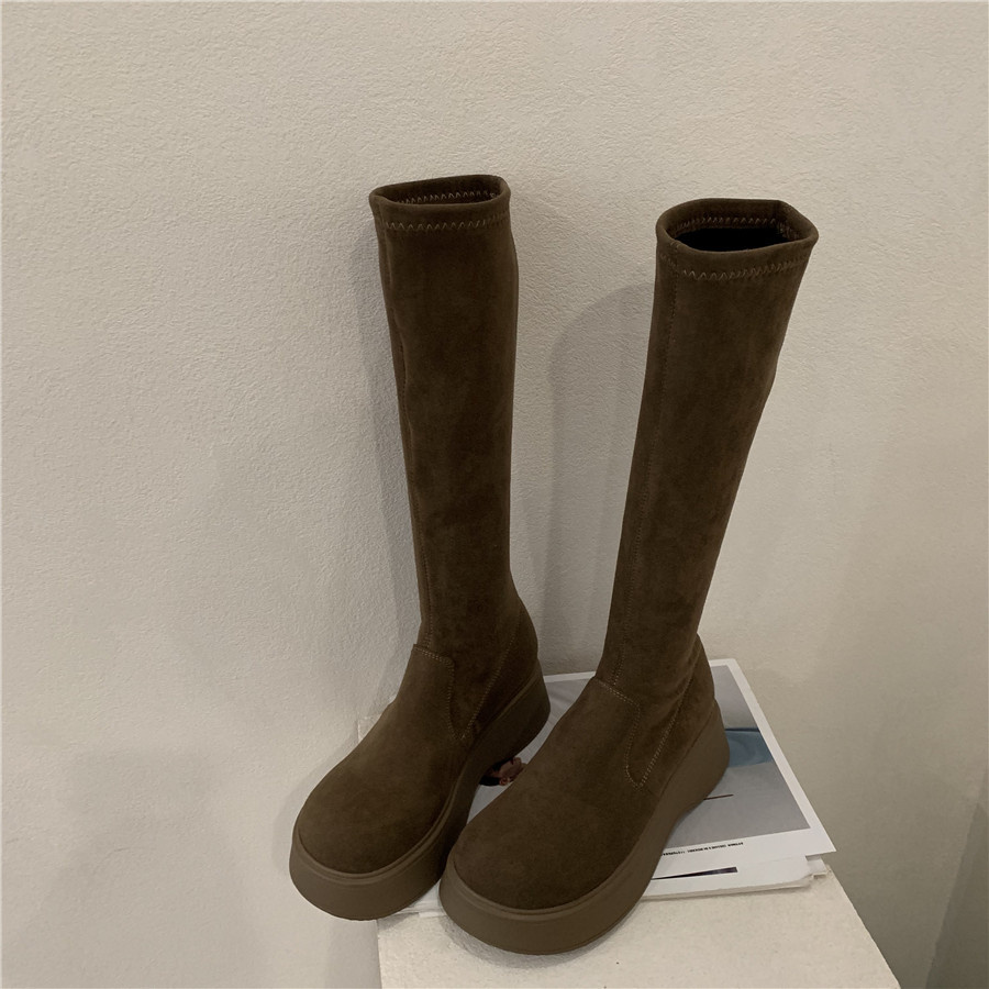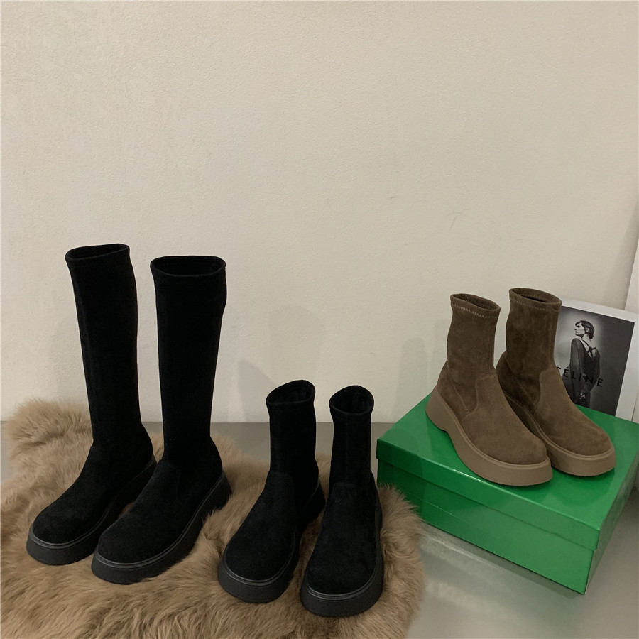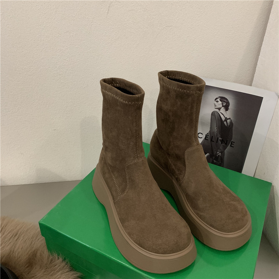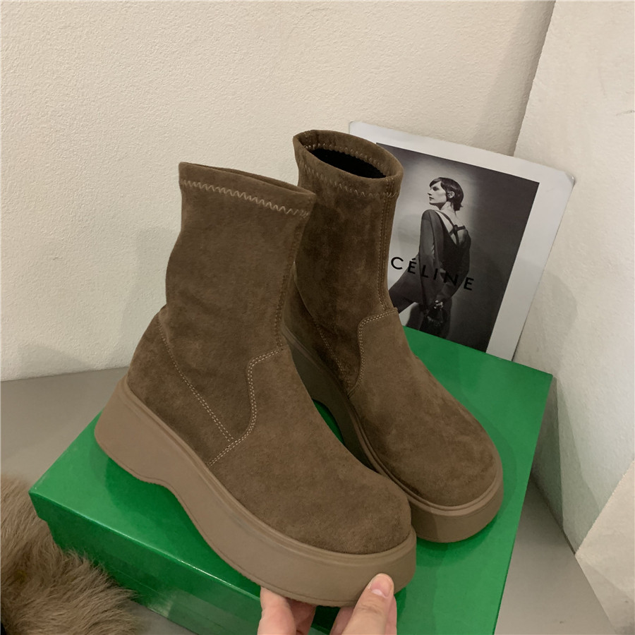 Martens, коричневые высокие сапоги на платформе, летние утепленные короткие сапоги, эластичные ботинки, подходит для подростков