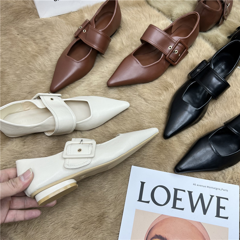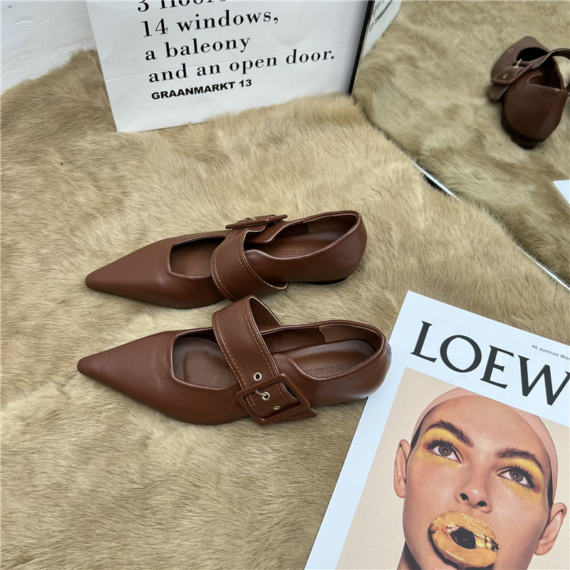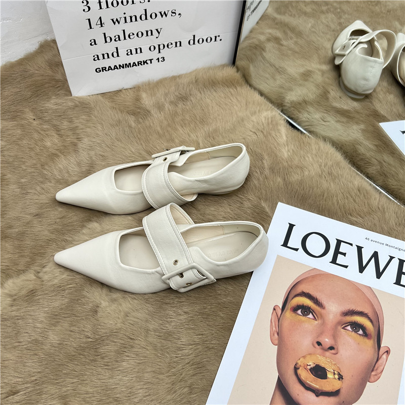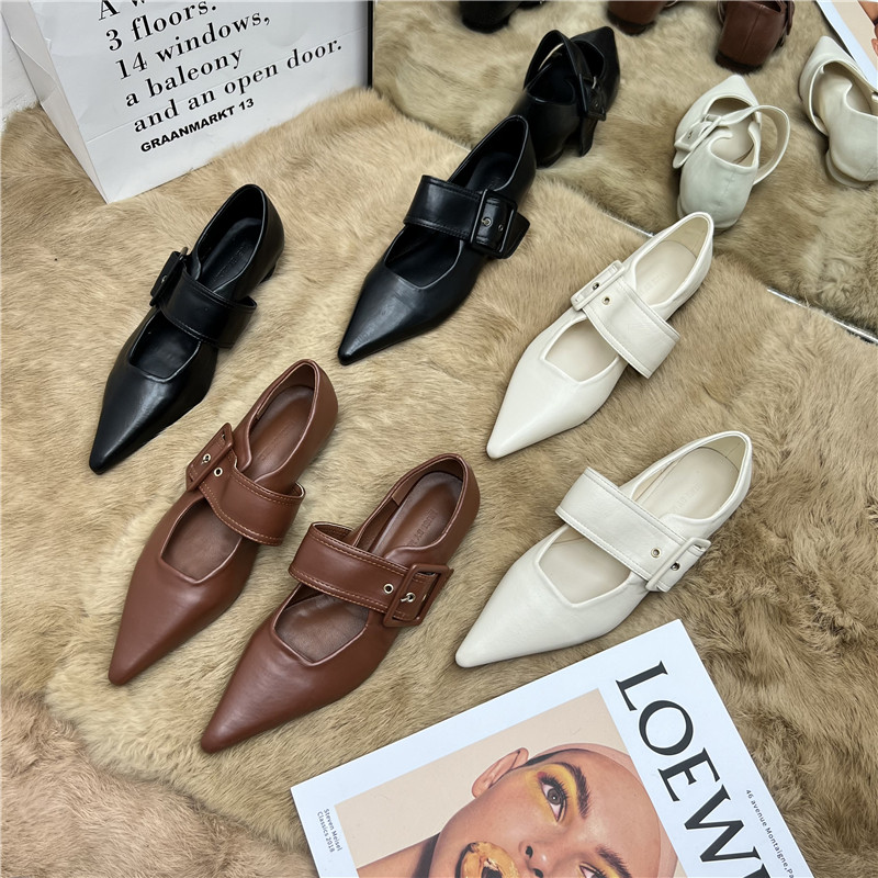Тонкая и модная ниша заостренная нога на низком каблуке одиночные туфли для женщин 2025 Весеннее стиль однопутный европейский и американский ретро низкий каблук Мэри Чжэнь обувь
