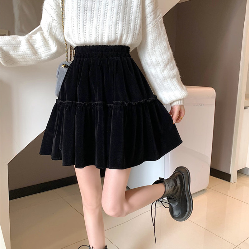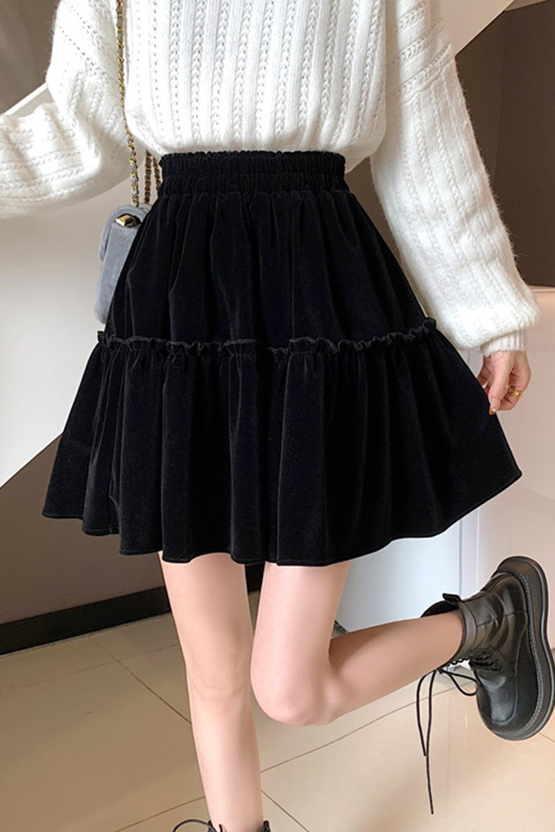 Черная бархатная демисезонная приталенная юбка в складку, большой размер, А-силуэт, подходит для подростков