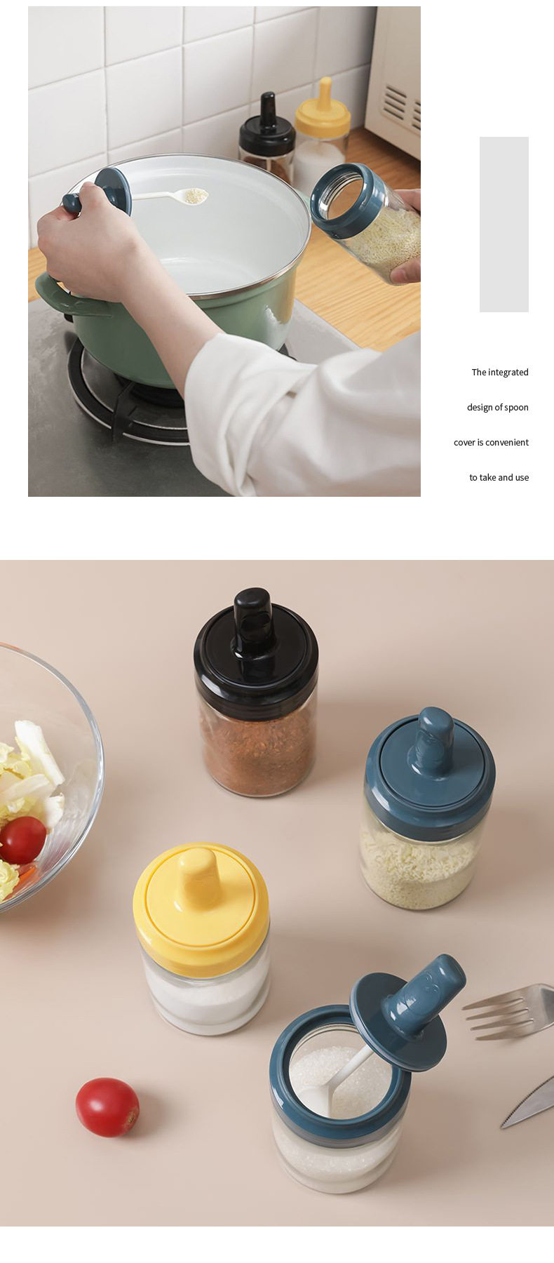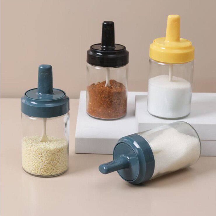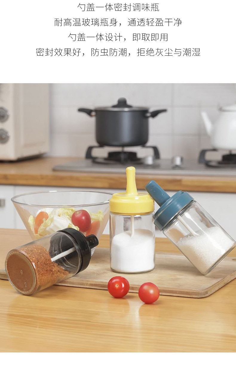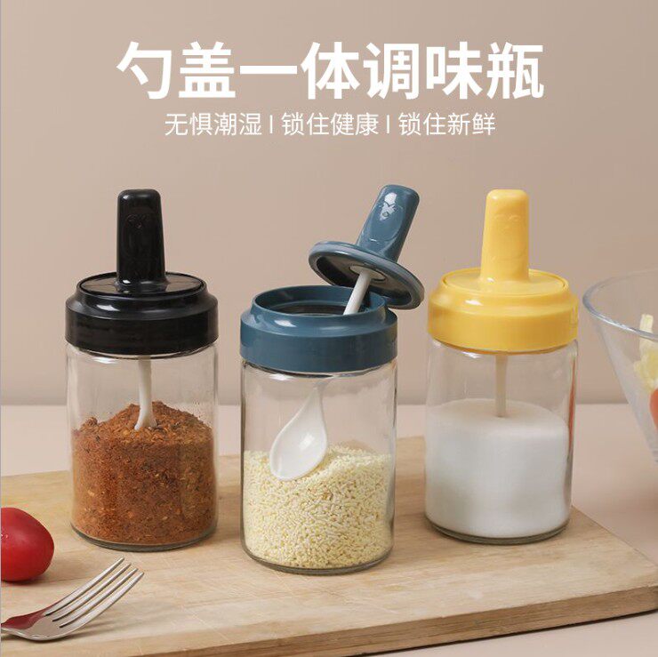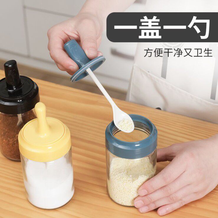 Стеклянный приправа кухонная ложка крышка интегрированной приправы MSG Box Sealing Moisture -Проятный костюм для приправы для приправы соли