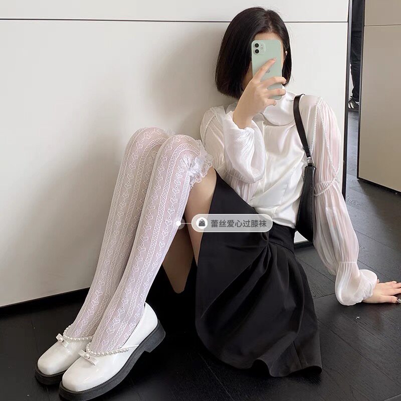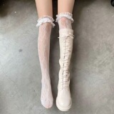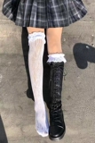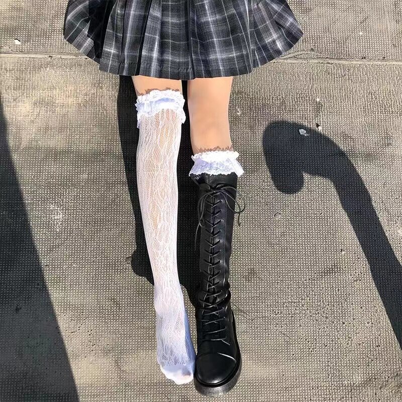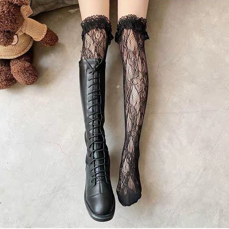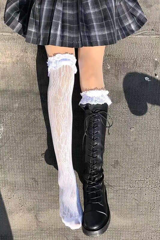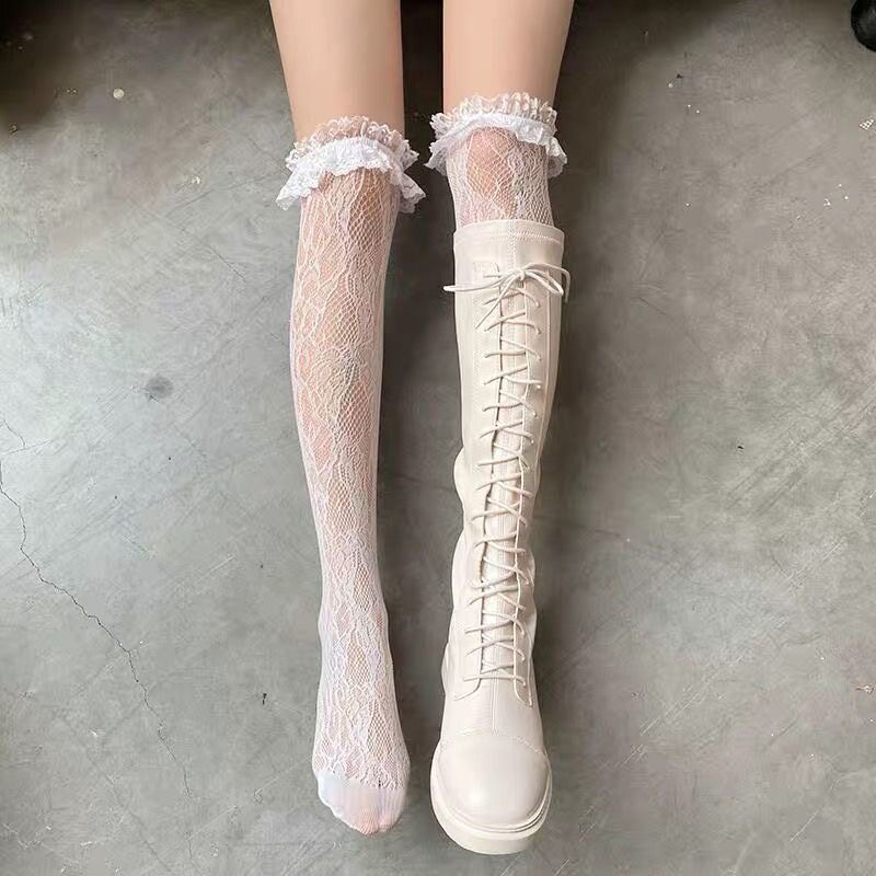Высокие сапоги, кружевные ботинки, белые гольфы, носки, популярно в интернете, кружевное платье, стиль Лолита, средней длины