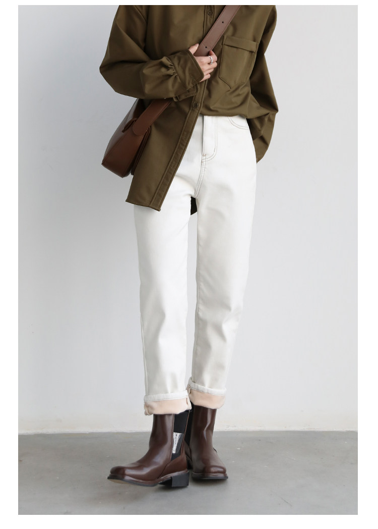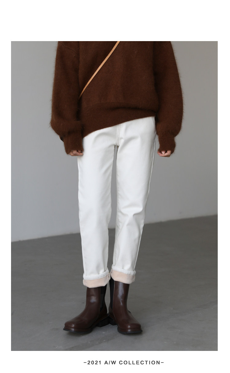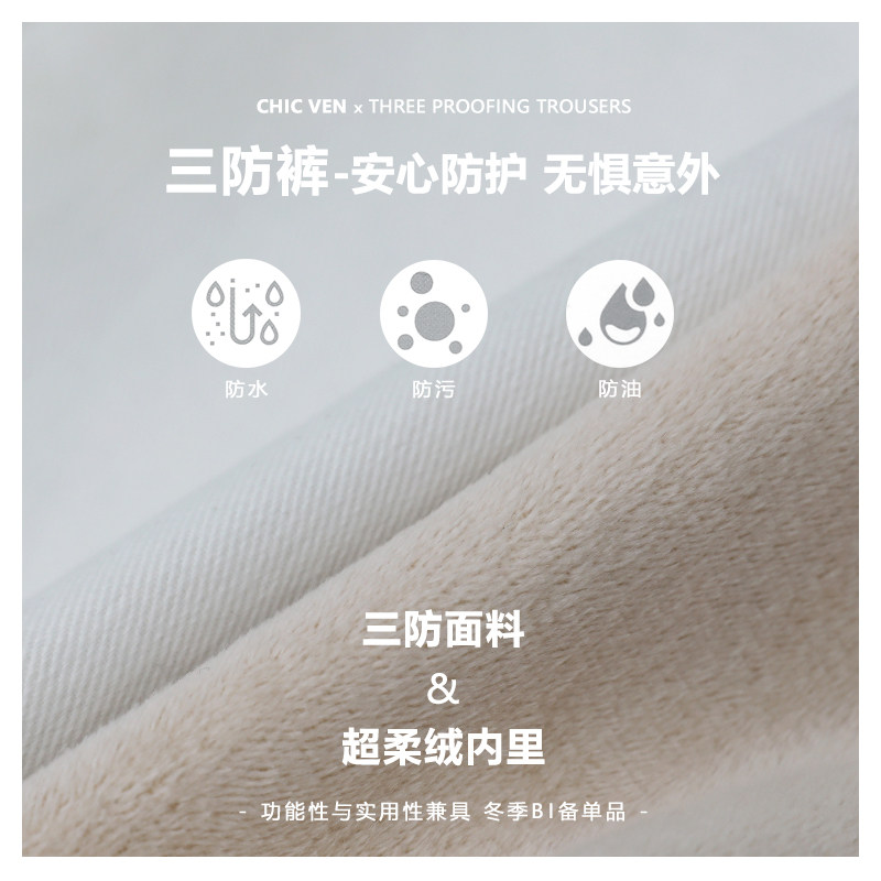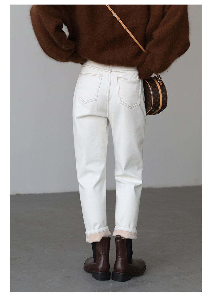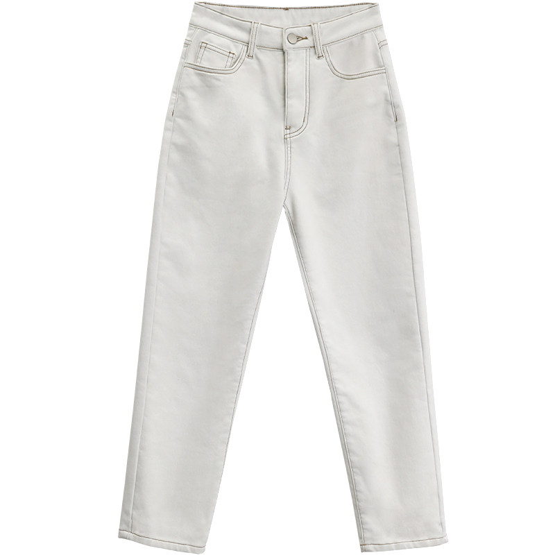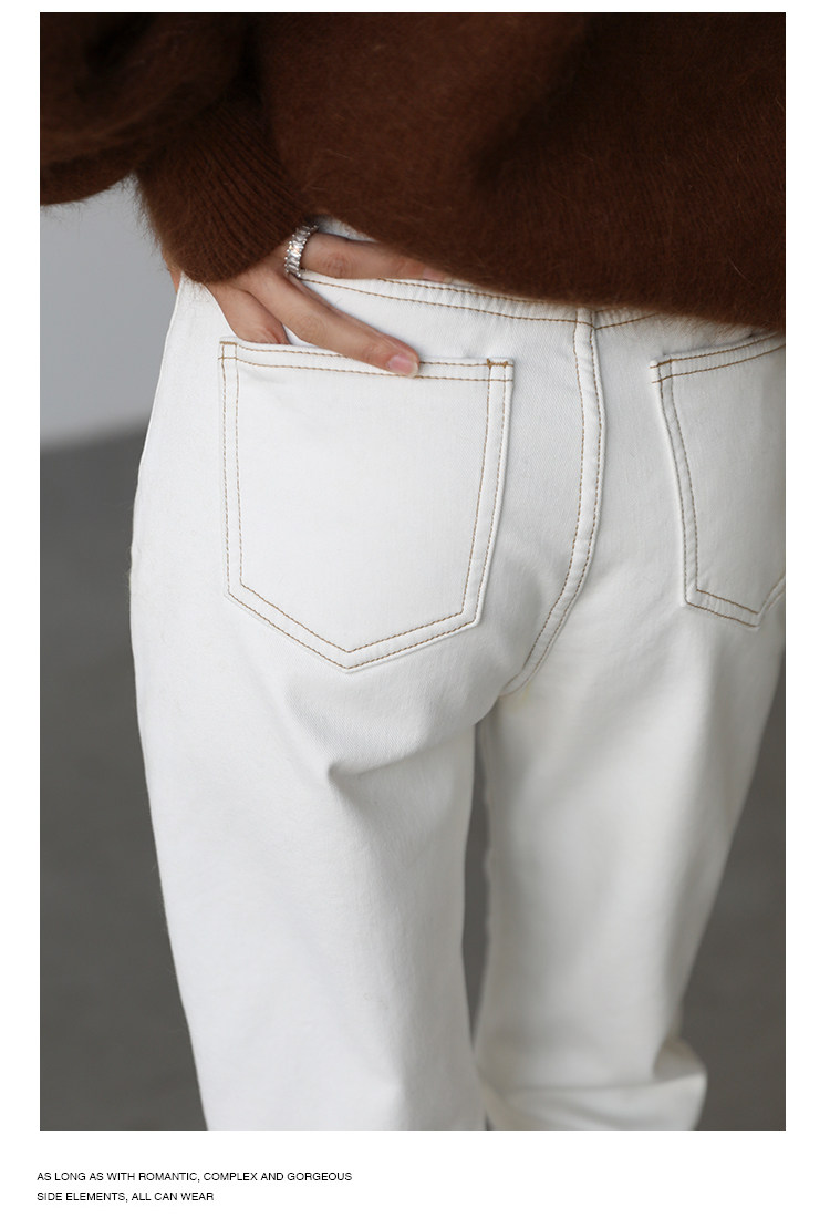 Чиквен "Пост -хуманизм" черные технологии Санфанг и бархатные брюки Женские белые джинсы зима